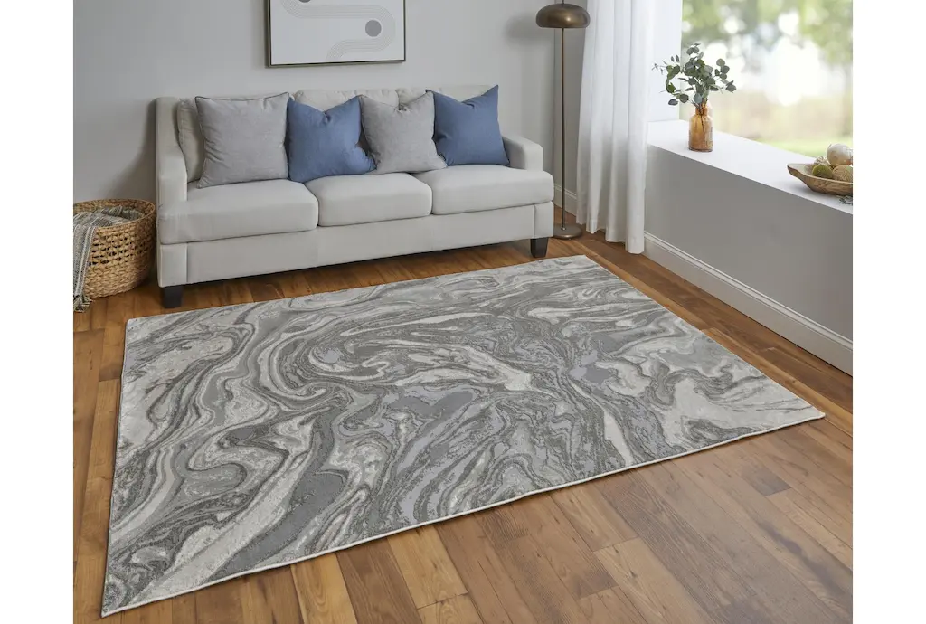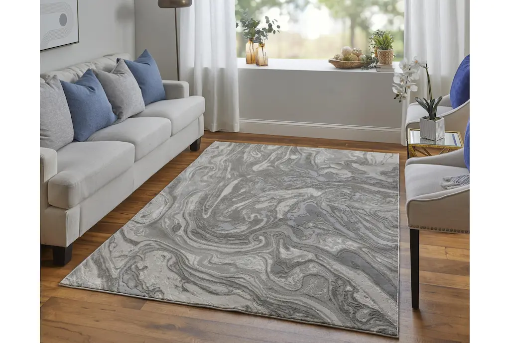 8'x11' Rug-Marble Swirl Light Grey | Layering | Abstract | Low Pile | Rectangle