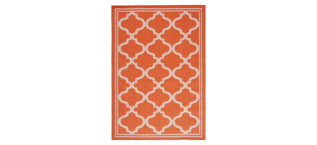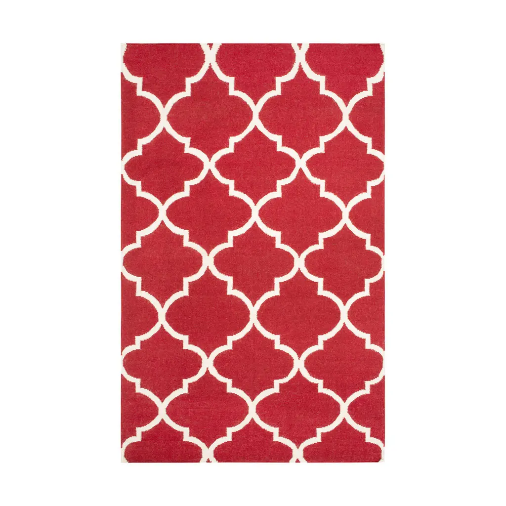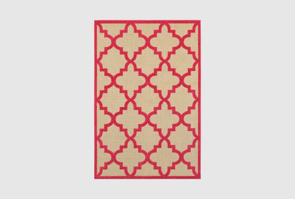 This 8'x11' Rug-Tron in Cherry/White is a stunning addition to any contemporary dining room. With its low pile and indoor design, this rug is both practical and stylish, making it the perfect choice for your home.
