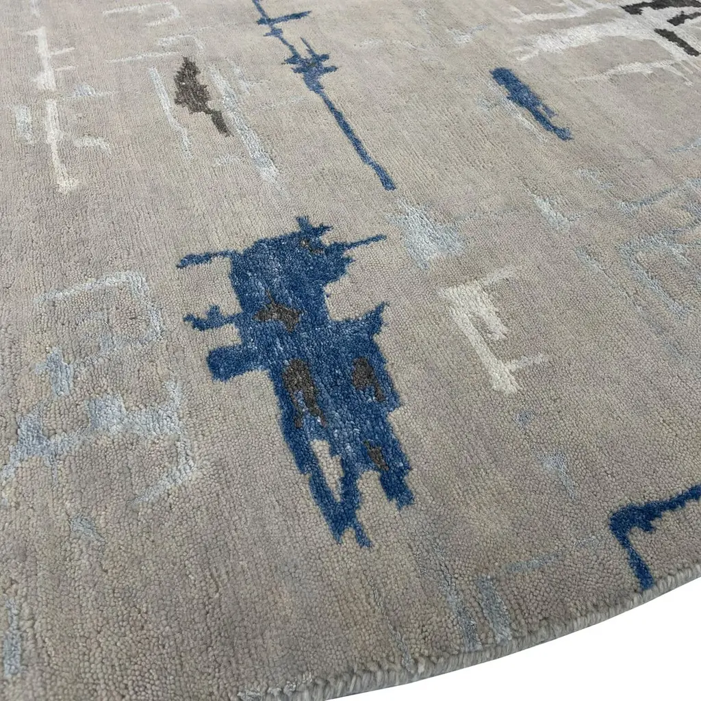 This hand-knotted rug's fresh palette and abstract pattern make it a welcome addition to just about any room. Silk lends the rug its luxurious luster; wool contributes durability and a dense pile. A rug pad is recommended to help prevent slipping.