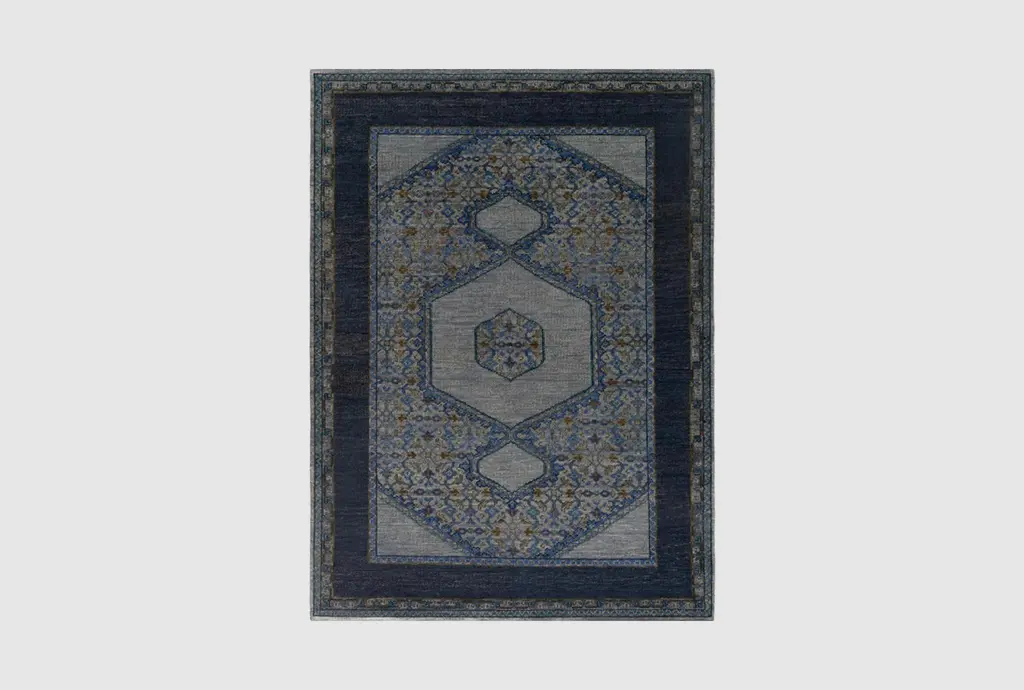 This exquisite 8'x8' Square Rug in Massimo Navy is the perfect addition to any contemporary dining room, crafted from high-quality fiber for durability and lasting style.