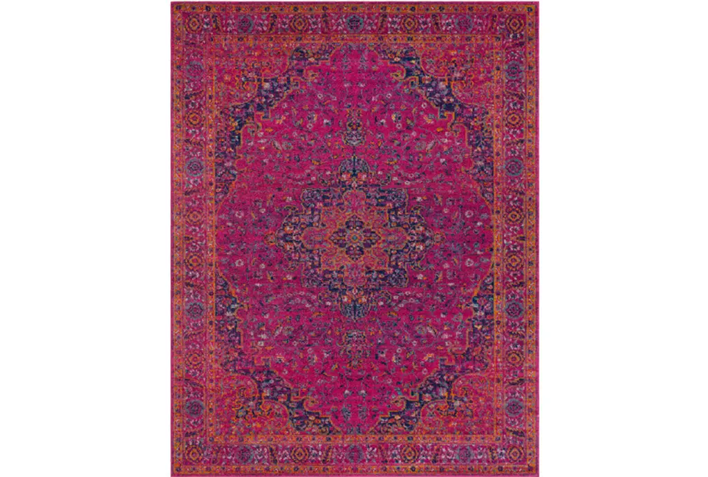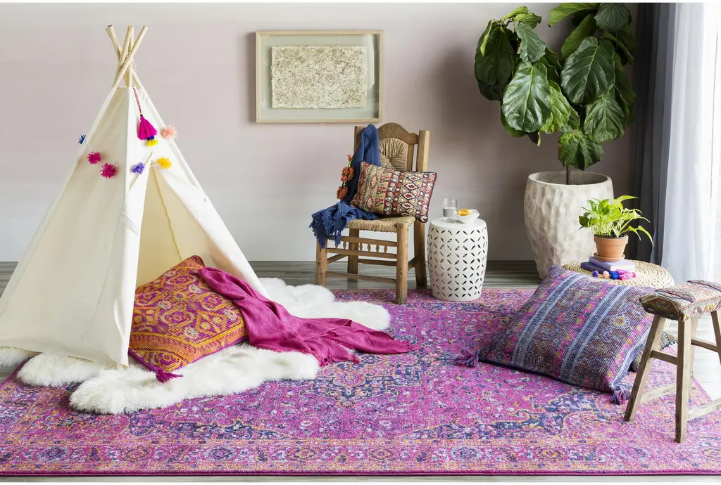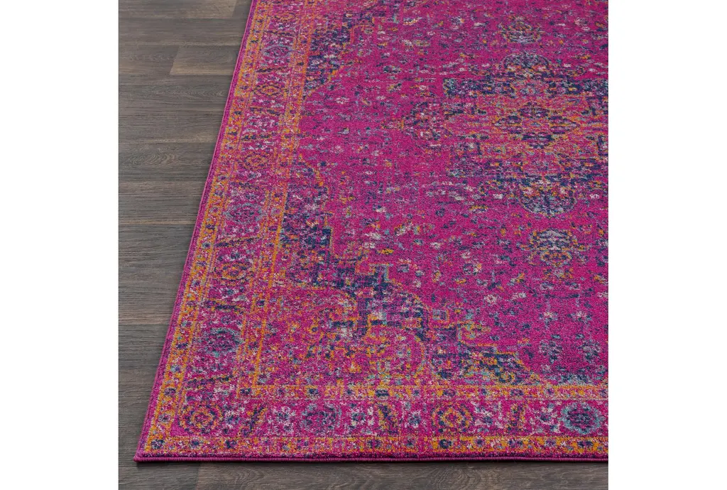 Enhance your living space with the vibrant 9'2"x12'5" Fiber Rug featuring the Ivete Medallion Traditional Botanical design in fuschia and orange by Surya. This stunning rectangle rug boasts a low pile, making it perfect for indoor use. The intricate floral and medallion motifs add a touch of charm to any room.