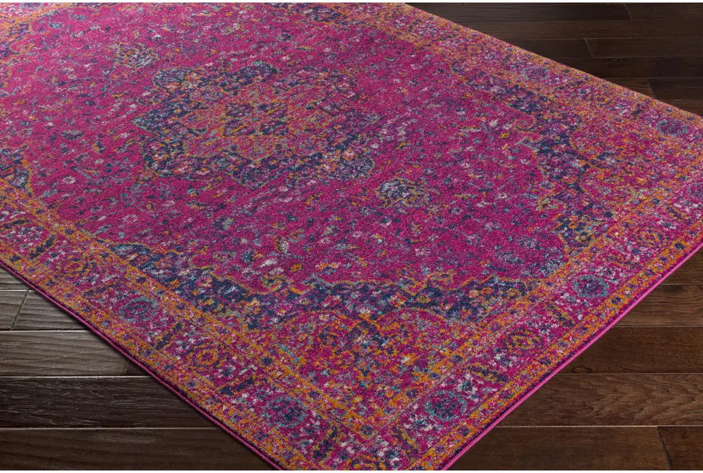 Enhance your living space with the vibrant 9'2"x12'5" Fiber Rug featuring the Ivete Medallion Traditional Botanical design in fuschia and orange by Surya. This stunning rectangle rug boasts a low pile, making it perfect for indoor use. The intricate floral and medallion motifs add a touch of charm to any room.