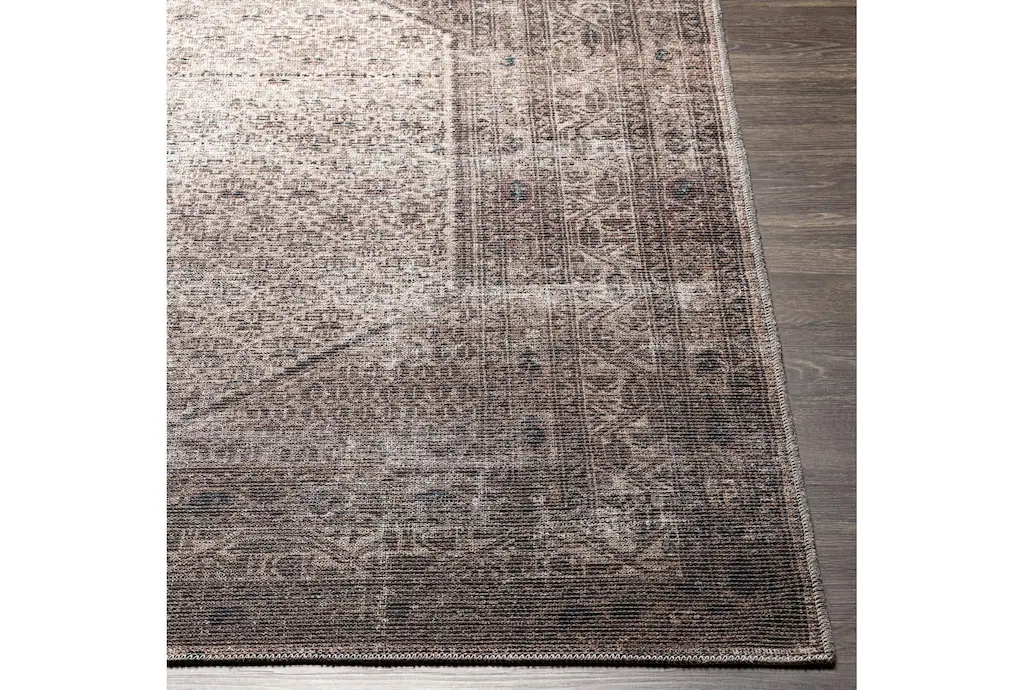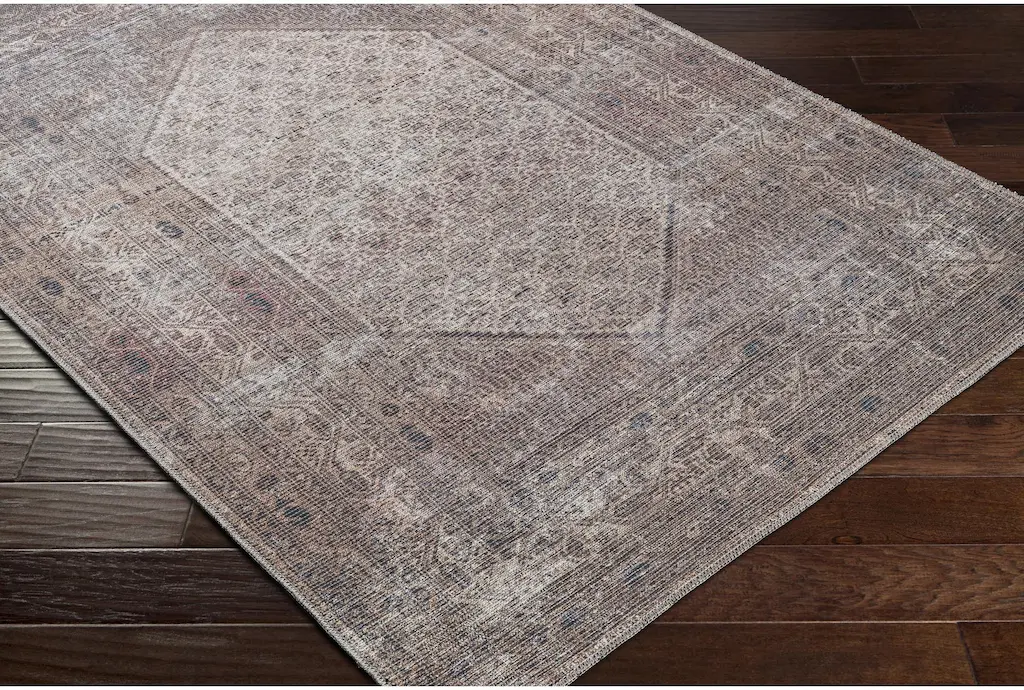 9'3"x12' Cotton Fabric Chenille Rug-Colbourn Traditional Botanical Machine Washable Dark Blue/tan | Uv Resistant | Performance By Surya