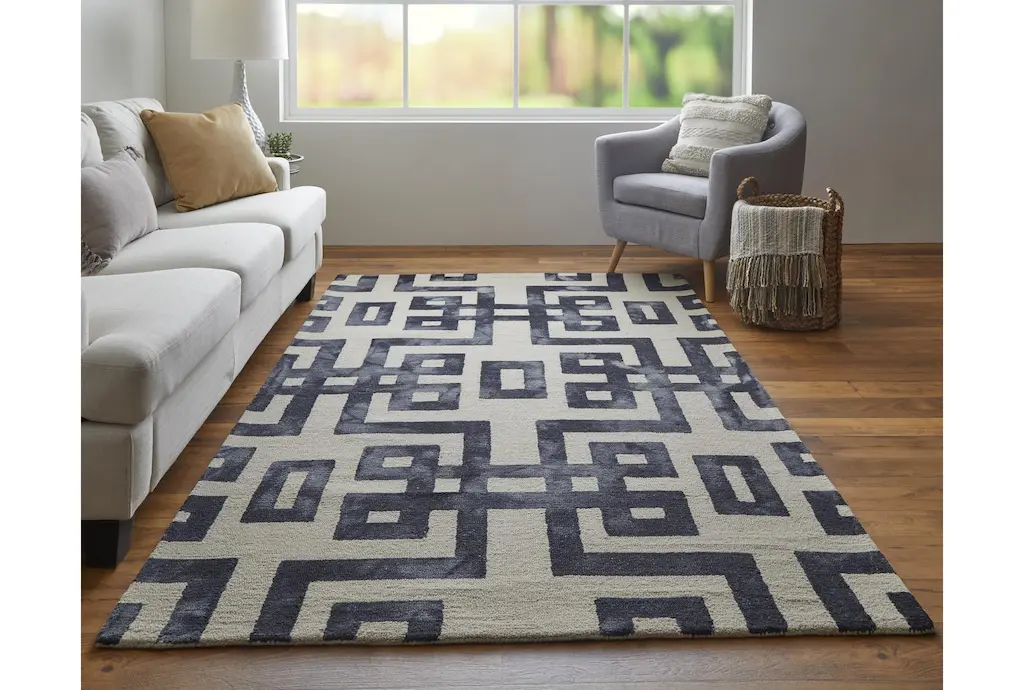 9'5"x13'5" Fiber Rug-Tristen Charcoal | Geometric | Hooked | Rectangle