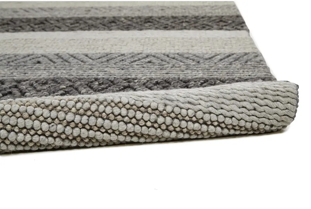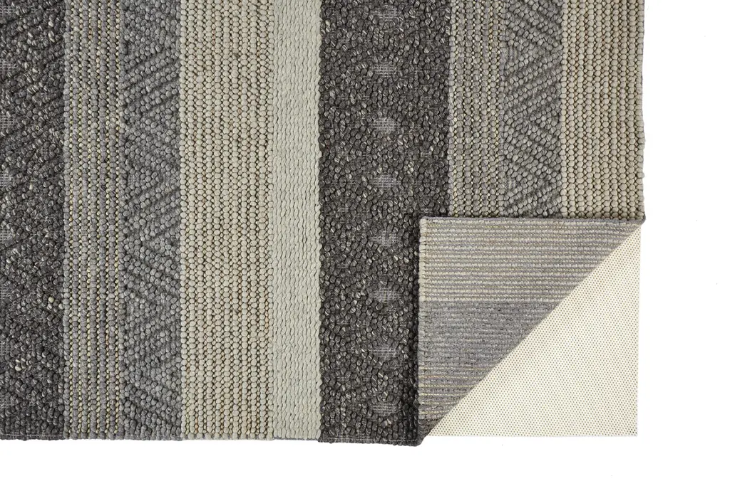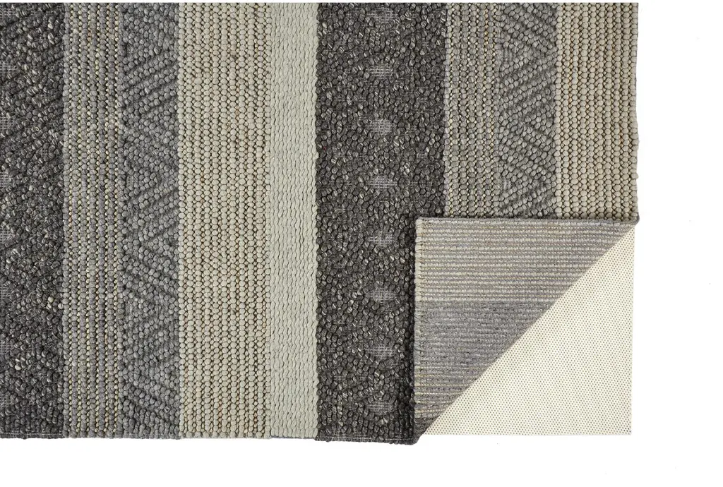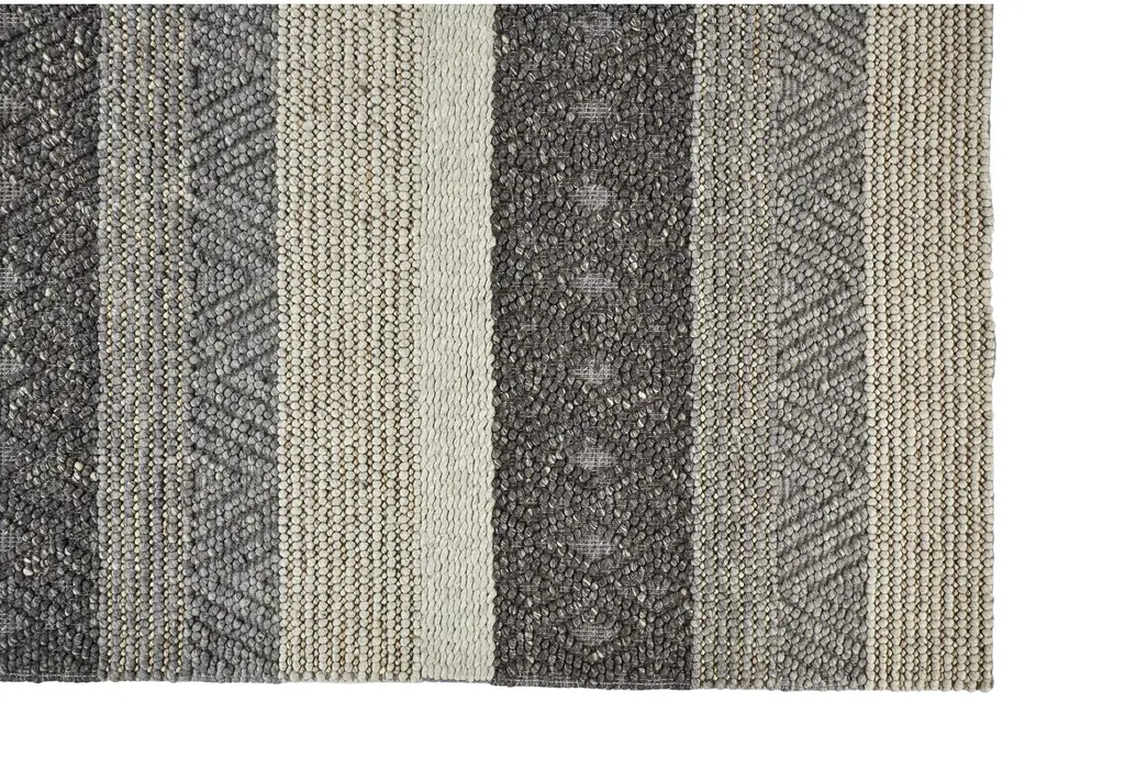9'5"x13'5" Rectangle Rug-Textured Wool Stripe Grey/sand | Geometric