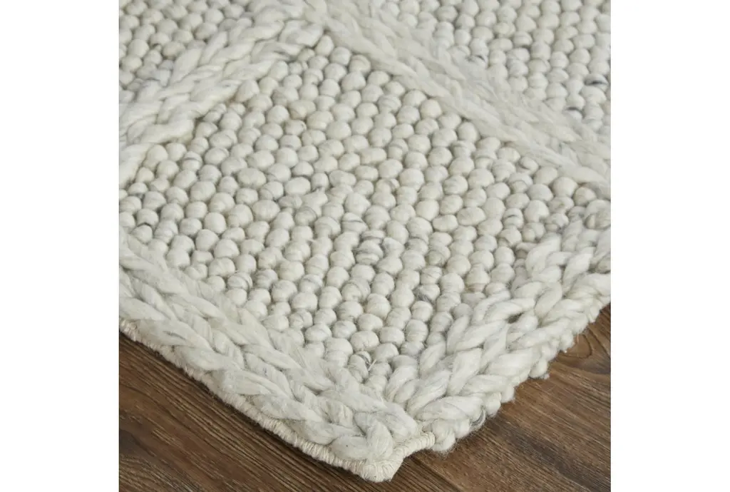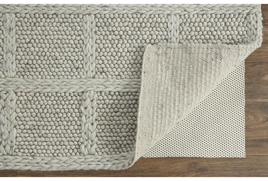 This 9'5"x13'5" ivory rug is a beautiful addition to any traditional home. Featuring a textured grid pattern, it's handwoven from wool for a soft and durable finish. The low pile design ensures it's both practical and stylish, making it perfect for bedrooms, living rooms, or any indoor space.