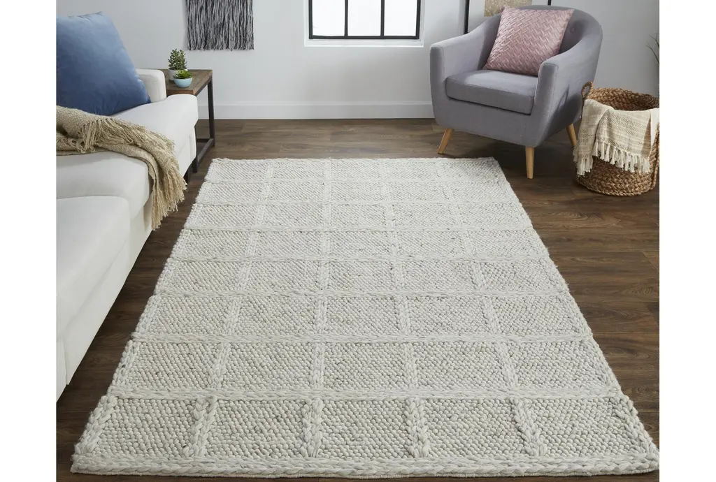 9'5"x13'5" Rug Ivory Textured Traditional Handwoven Wool Grid Rectangle Solid Low Pile