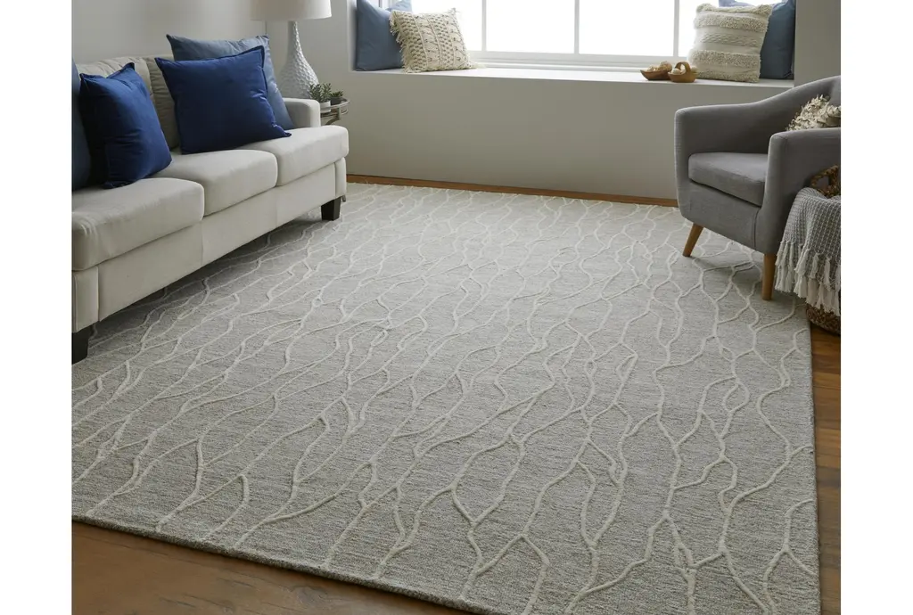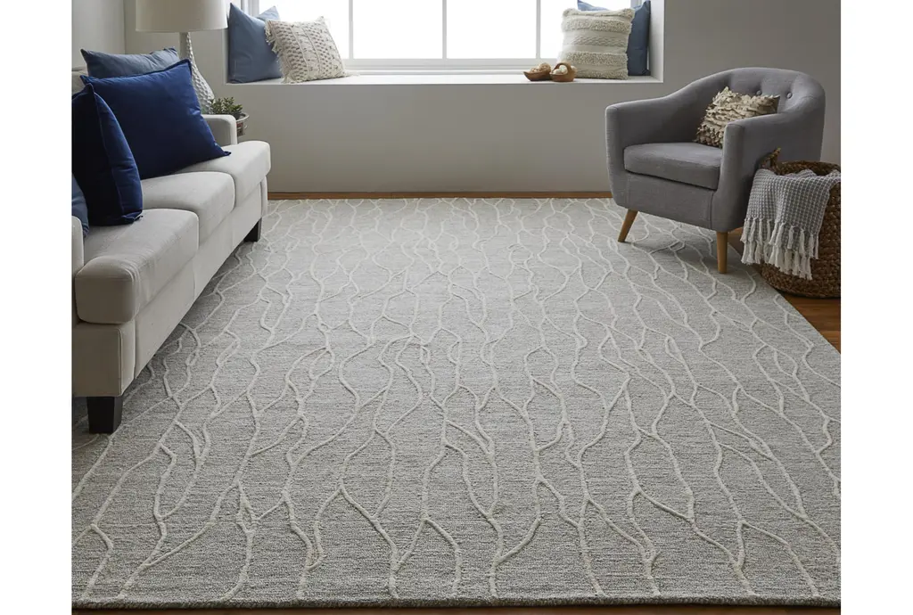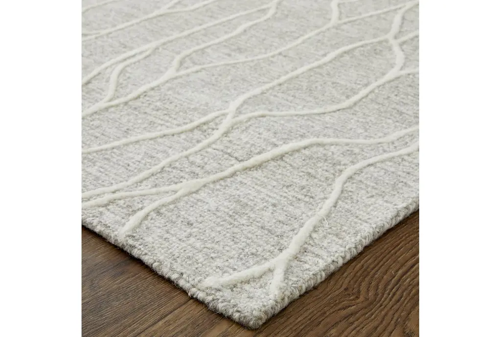9'5"x13'5" Wool Rug-Tribal Waves Ivory/grey | Low Pile | Rectangle