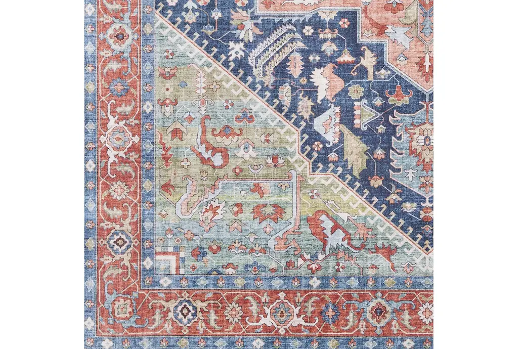 9'x12' Fiber Rug-Fiona Medallion Blue/peach/green | Layering | Botanical | Low Pile | Rectangle By Surya
