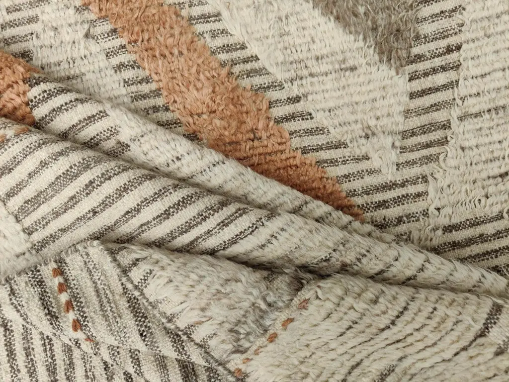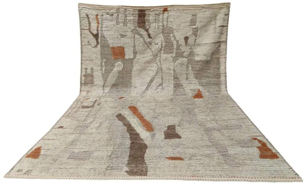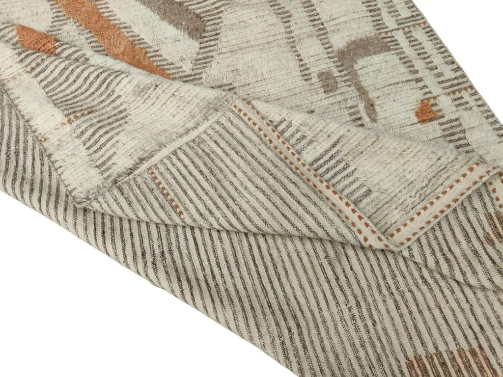 Elevate your living space with the exquisite charm of this new modern hand-knotted Moroccan berber beni ourain style rug, crafted with precision and care from 100% wool. Combining the allure of Moroccan design with contemporary sensibilities, this rug is a striking addition to any home, offering both style and substance in equal measure.Each knot is meticulously handcrafted by skilled artisans, resulting in a texture that is both luxurious and resilient.Crafted entirely from wool, this Tulu rug offers warmth, softness, and durability, making it a practical and inviting choice for any room in your home. Whether placed in a living room, bedroom, or even a home office, this rug adds a touch of elegance and comfort to your space.As a new addition to your home, this modern Moroccan azilal style rug brings a fresh perspective to traditional craftsmanship. Its clean lines, contemporary design, and high-quality materials make it a versatile and timeless piece that will complement a wide range of interior styles.Elevate your decor with the modern sophistication of this hand-knotted Moroccan Tulu rug, where craftsmanship meets contemporary design to create a truly exceptional statement piece for your home.Size: 9 x 12 Ft (275 x 366 cm)Weaves: Hand-KnottedMaterials: 100% WoolPile Height: MediumRoom: Any Room, Guestroom, Nursery, Kid's Room, Lounge, Living Room, Kitchen, Entryway, Salon, Trailer, Home Office / Study, Garage, Foyer, Dining Room, Conservatory, Bedroom, Basement, Utility/Laundry RoomAge: NewShape: RectangleType: Area RugStyle: Moroccan Berber, Beni Ourain, AzilalColor: Beige CUSTOM OPTIONS AVAILABLE Ref No: H003 Please inquire about wholesale pricing