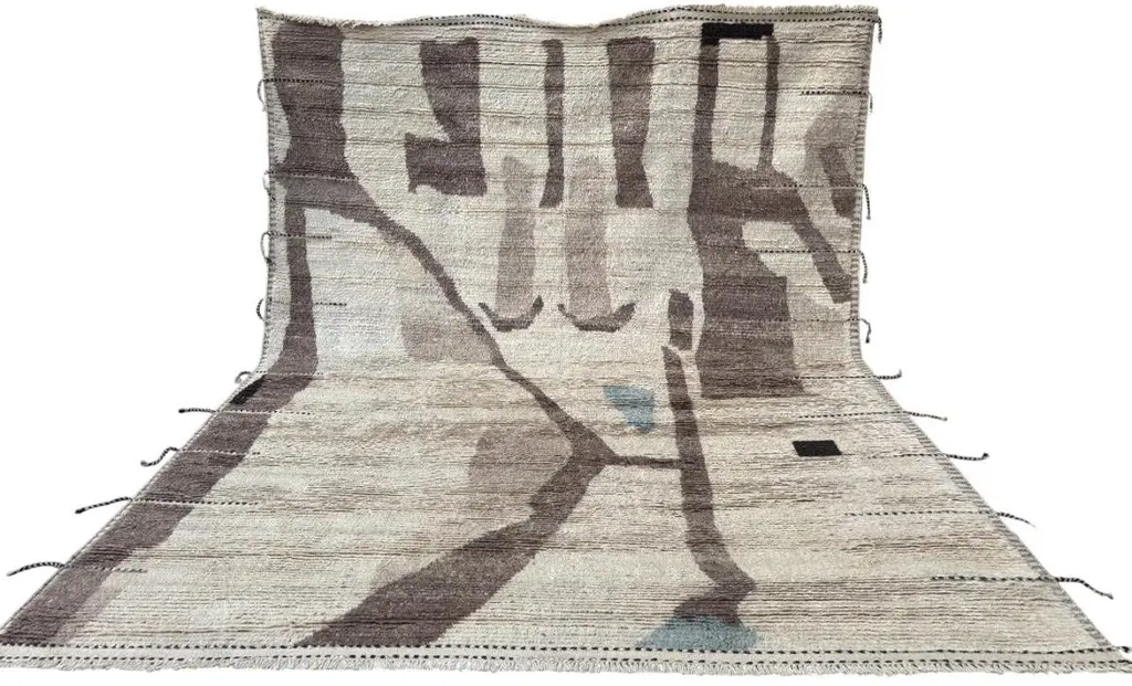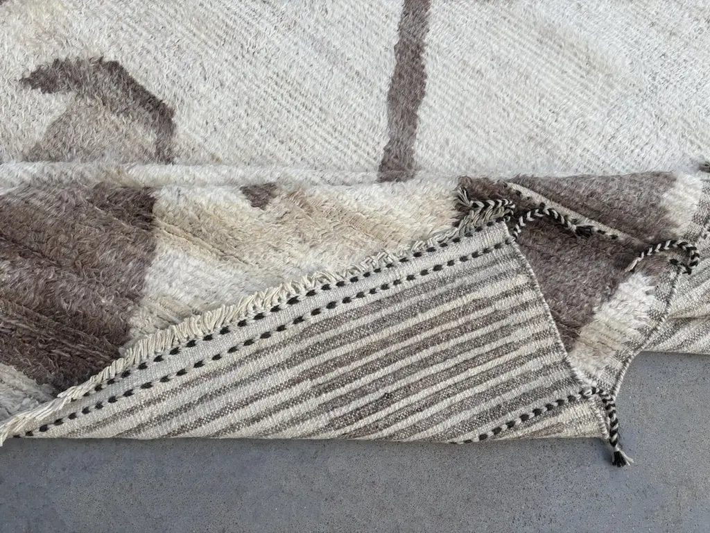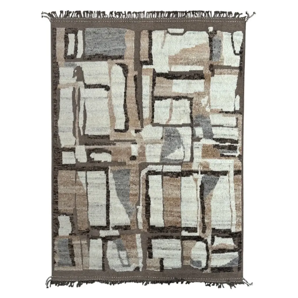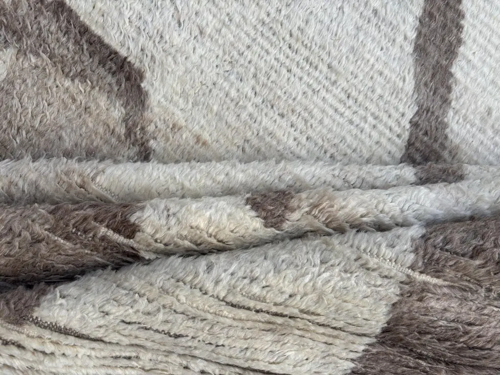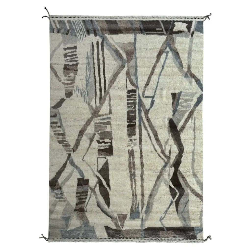 Elevate your living space with the exquisite charm of this new modern hand-knotted Moroccan berber beni ourain rug, crafted with precision and care from 100% wool. Combining the allure of Moroccan design with contemporary sensibilities, this rug is a striking addition to any home, offering both style and substance in equal measure.Each knot is meticulously handcrafted by skilled artisans, resulting in a texture that is both luxurious and resilient.Crafted entirely from wool, this Tulu rug offers warmth, softness, and durability, making it a practical and inviting choice for any room in your home. Whether placed in a living room, bedroom, or even a home office, this rug adds a touch of elegance and comfort to your space.As a new addition to your home, this modern Moroccan azilal style rug brings a fresh perspective to traditional craftsmanship. Its clean lines, contemporary design, and high-quality materials make it a versatile and timeless piece that will complement a wide range of interior styles.Elevate your decor with the modern sophistication of this hand-knotted Moroccan Tulu rug, where craftsmanship meets contemporary design to create a truly exceptional statement piece for your home.Size: 9 x 12 Ft (275 x 365 cm)Weaves: Hand-KnottedMaterials: 100% Natural WoolPile Height: MediumRoom: Any Room, Guestroom, Nursery, Kid's Room, Lounge, Living Room, Kitchen, Entryway, Salon, Trailer, Home Office / Study, Garage, Foyer, Dining Room, Conservatory, Bedroom, Basement, Utility/Laundry RoomAge: NewShape: RectangleType: Area Rug CUSTOM OPTIONS AVAILABLE Ref No: H025 Please inquire about wholesale pricing
