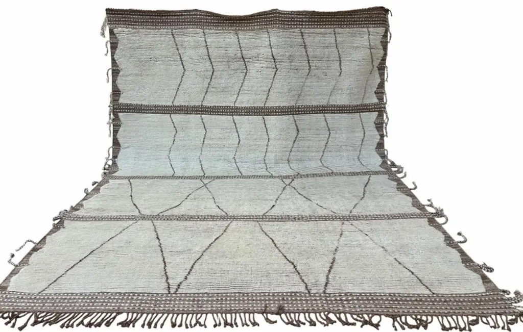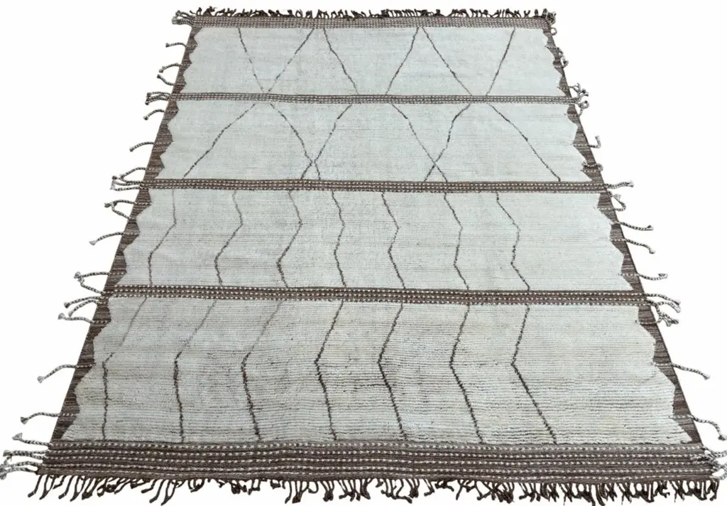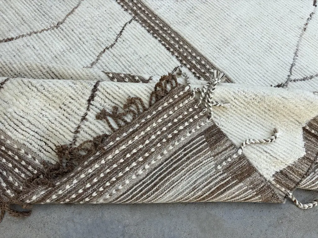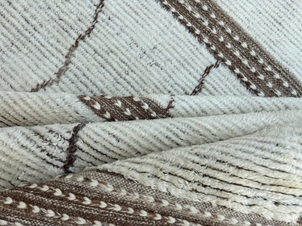 Elevate your living space with the exquisite charm of this new modern hand-knotted Moroccan Berber Beni Ourain design rug, crafted with precision and care from 100% wool. Combining the allure of Moroccan style with contemporary sensibilities, this rug is a striking addition to any home, offering both style and substance in equal measure.Each knot is meticulously handcrafted by skilled artisans, resulting in a texture that is both luxurious and resilient.Crafted entirely from wool, this Tulu rug offers warmth, softness, and durability, making it a practical and inviting choice for any room in your home. Whether placed in a living room, bedroom, or even a home office, this rug adds a touch of elegance and comfort to your space.As a new addition to your home, this modern Moroccan azilal style rug brings a fresh perspective to traditional craftsmanship. Its clean lines, contemporary design, and high-quality materials make it a versatile and timeless piece that will complement a wide range of interior styles.Elevate your decor with the modern sophistication of this hand-knotted Moroccan Tulu rug, where craftsmanship meets contemporary design to create a truly exceptional statement piece for your home.Size: 9 x 12 Ft (275 x 365 cm)Weaves: Hand-KnottedMaterials: 100% WoolPile Height: MediumRoom: Any Room, Guestroom, Nursery, Kid's Room, Lounge, Living Room, Kitchen, Entryway, Salon, Trailer, Home Office / Study, Garage, Foyer, Dining Room, Conservatory, Bedroom, Basement, Utility/Laundry RoomAge: NewShape: RectangleType: Area RugStyle: Moroccan Beni Ourain, Scandivanian CUSTOM OPTIONS AVAILABLE Ref No: H015 Please inquire about wholesale pricing