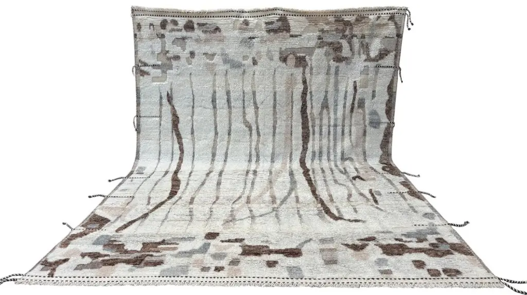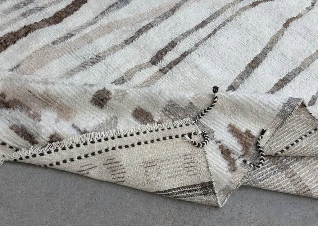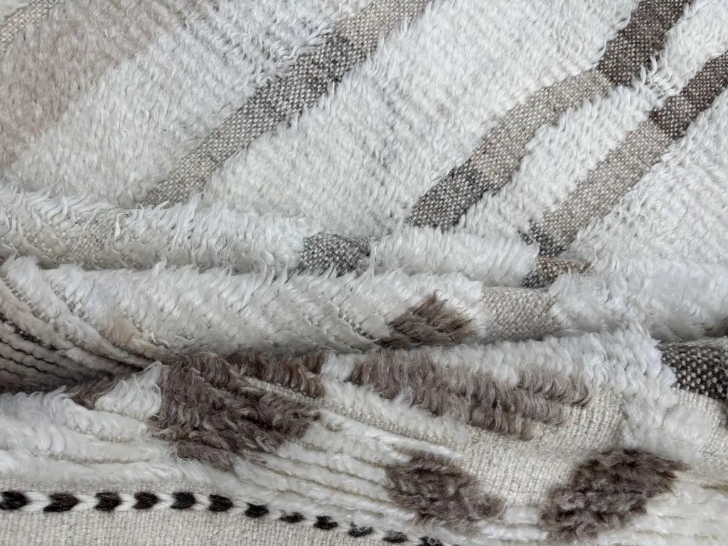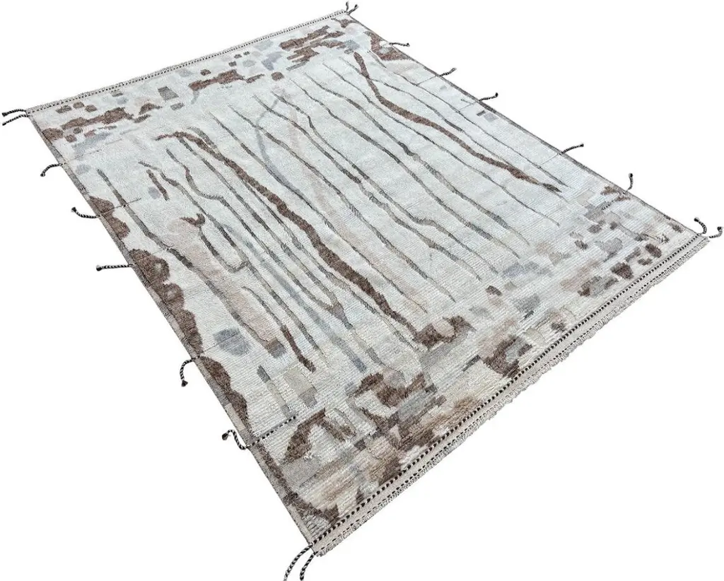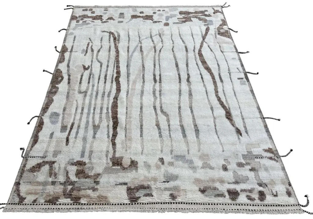 Elevate your living space with the exquisite charm of this new modern hand-knotted Moroccan berber beni ourain rug, crafted with precision and care from 100% wool. Combining the allure of Moroccan design with contemporary sensibilities, this rug is a striking addition to any home, offering both style and substance in equal measure.Each knot is meticulously handcrafted by skilled artisans, resulting in a texture that is both luxurious and resilient.Crafted entirely from wool, this Tulu rug offers warmth, softness, and durability, making it a practical and inviting choice for any room in your home. Whether placed in a living room, bedroom, or even a home office, this rug adds a touch of elegance and comfort to your space.As a new addition to your home, this modern Moroccan azilal style rug brings a fresh perspective to traditional craftsmanship. Its clean lines, contemporary design, and high-quality materials make it a versatile and timeless piece that will complement a wide range of interior styles.Elevate your decor with the modern sophistication of this hand-knotted Moroccan Tulu rug, where craftsmanship meets contemporary design to create a truly exceptional statement piece for your home.The rug is available in 9 x 12 Ft (275 x 365 cm) for fast dispatch.Size: 9 x 12 Ft (275 x 365 cm)Weaves: Hand-KnottedMaterials: 100% Natural WoolPile Height: MediumRoom: Any Room, Guestroom, Nursery, Kid's Room, Lounge, Living Room, Kitchen, Entryway, Salon, Trailer, Home Office / Study, Garage, Foyer, Dining Room, Conservatory, Bedroom, Basement, Utility/Laundry RoomAge: NewShape: RectangleType: Area Rug CUSTOM OPTIONS AVAILABLE Ref No: H054 Please inquire about wholesale pricing