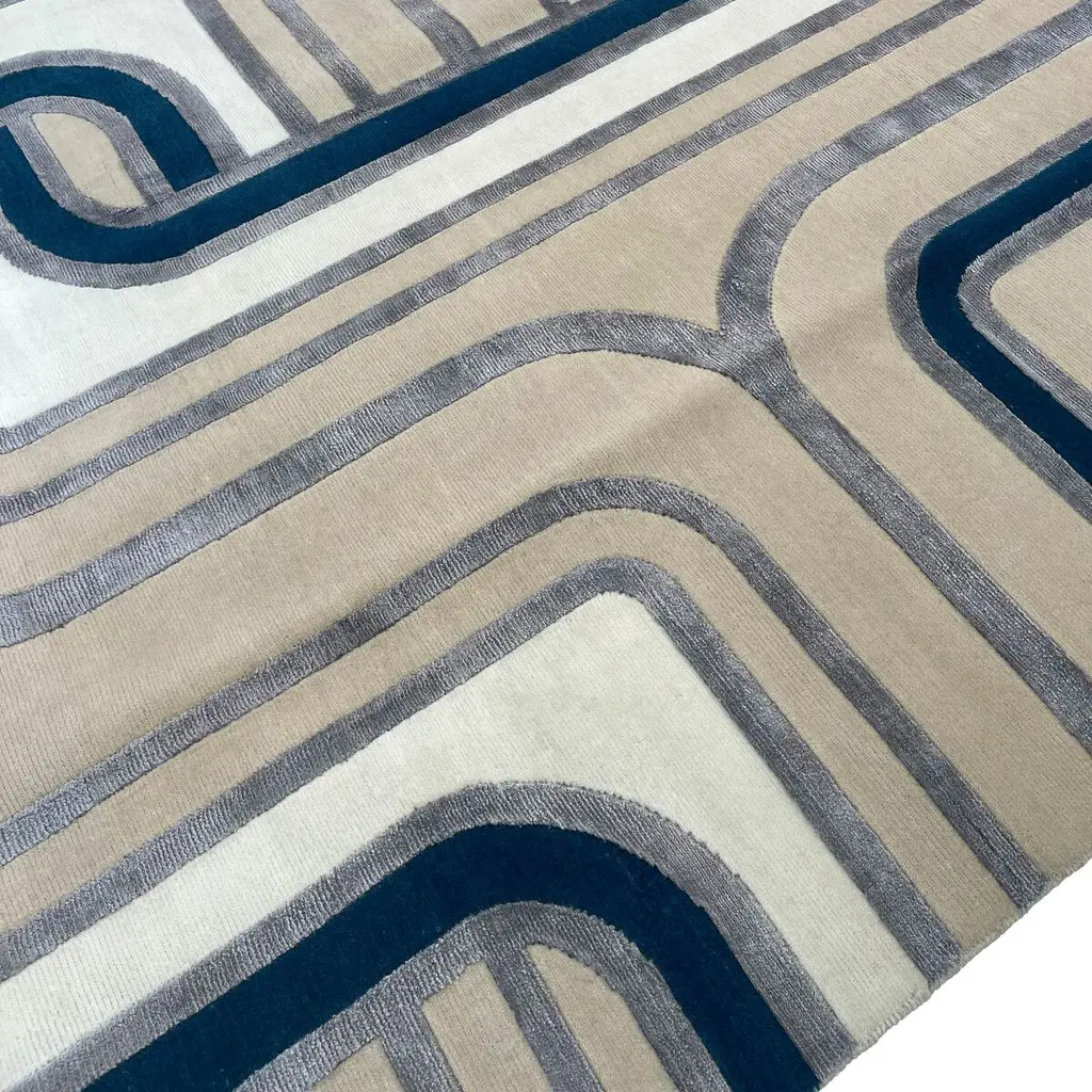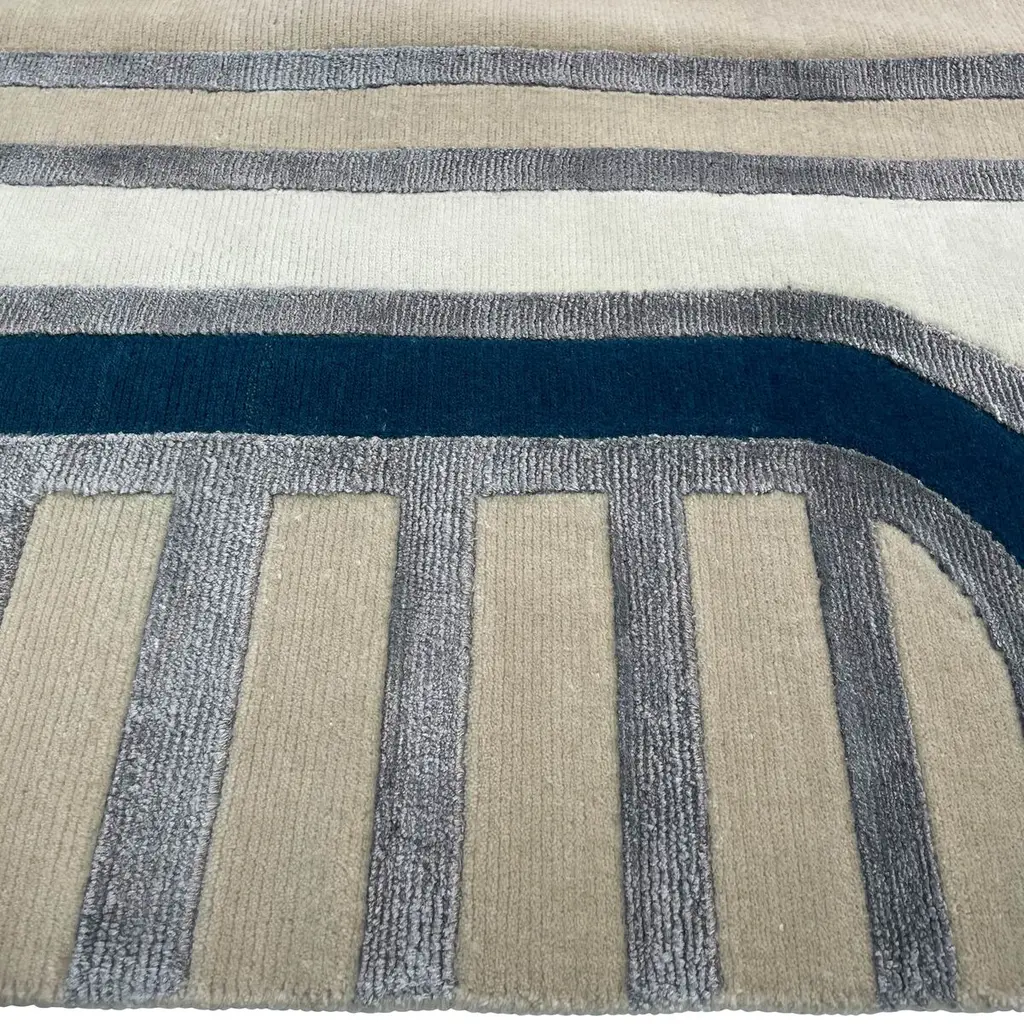A perfect marriage of traditional and contemporary, this rug boasts a thoroughly modern design yet was hand-knotted by Indian artisans using time-honored techniques. Silk among the wool provides a subtle but unmistakable luster. A rug pad is recommended to help prevent slipping.
