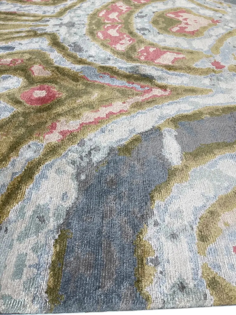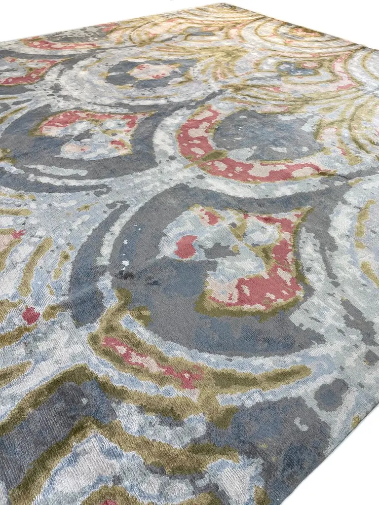 Silk gives this meticulously hand-knotted rug its luxurious luster, as well as makes it a pleasure to walk across barefoot. The bold, painterly design draws upon motifs common to classic Persian rugs, making this well suited to traditional and contemporary rooms alike. A rug pad is recommended to keep the rug securely in place.