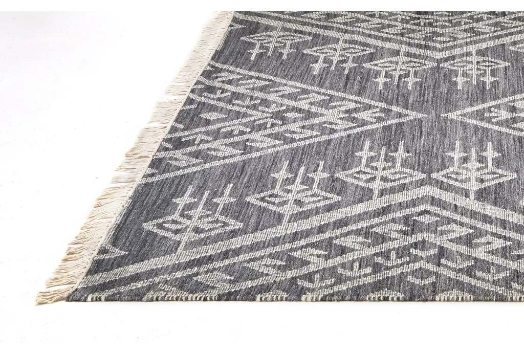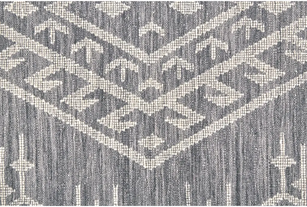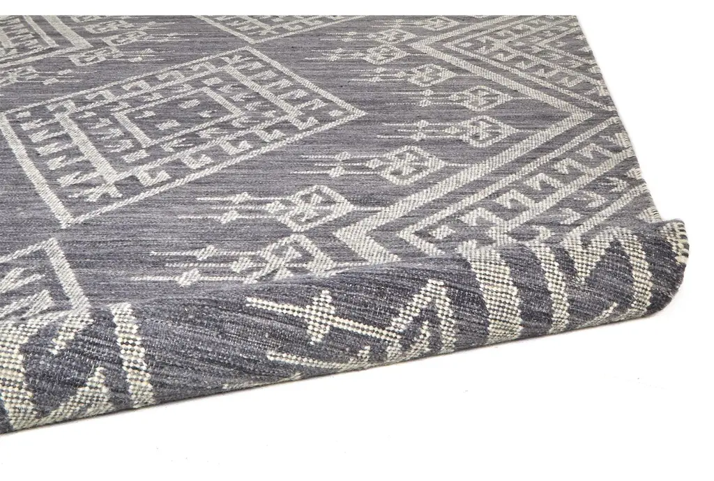 9'x12' Rug-Boho Traditional Flatweave Wool Navy/ivory | Low Pile | Geometric | Rectangle