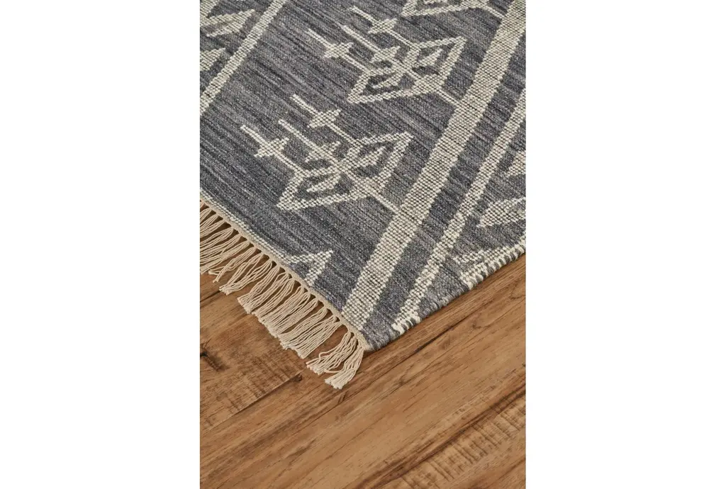 This exquisite 9'x12' Boho Flatweave rug in Navy/Ivory is perfect for adding a touch of elegance to your indoor living space. Made of high-quality wool, this traditional style rug boasts a low pile, making it easy to maintain and perfect for high-traffic areas.
