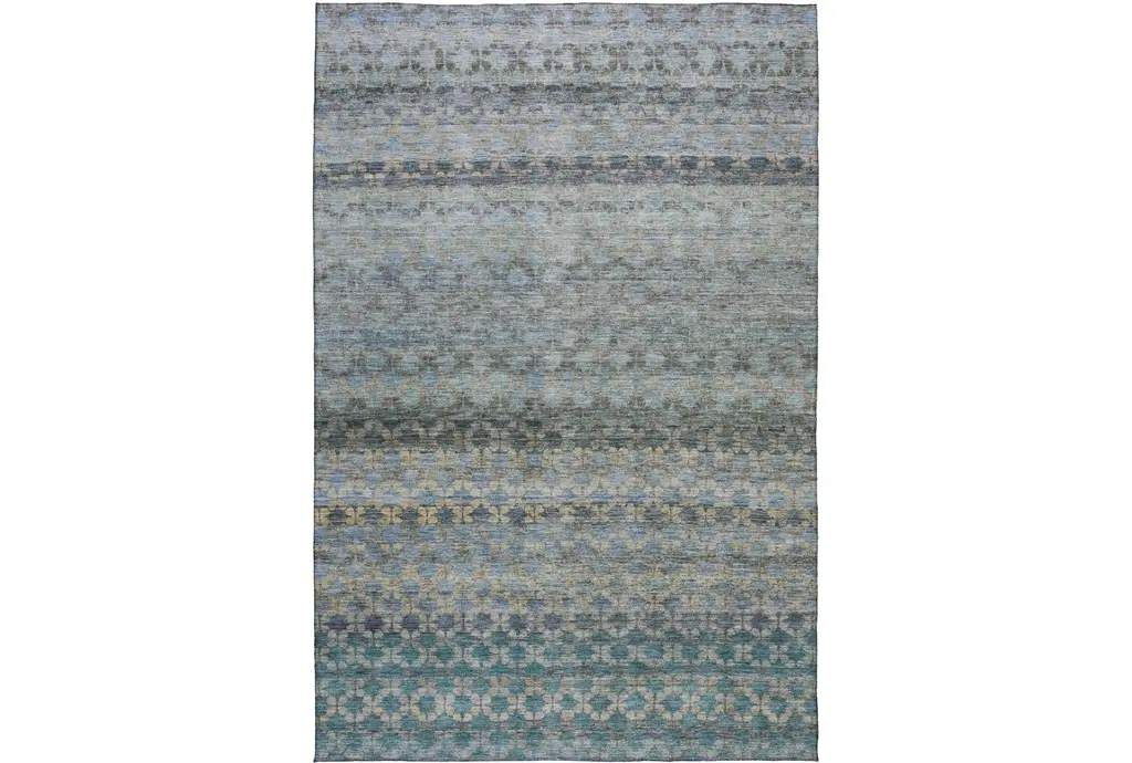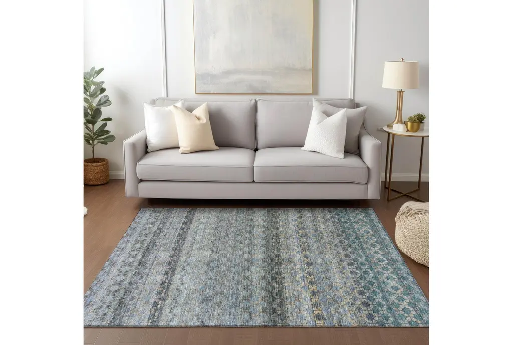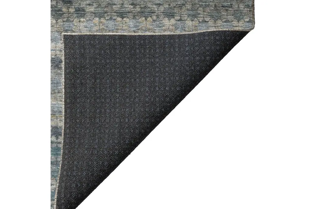 9'x12' Rug-Burano Washable Traditional Circle Grid Blue | Rectangle | Machine Washable | Non Slip | Low Pile