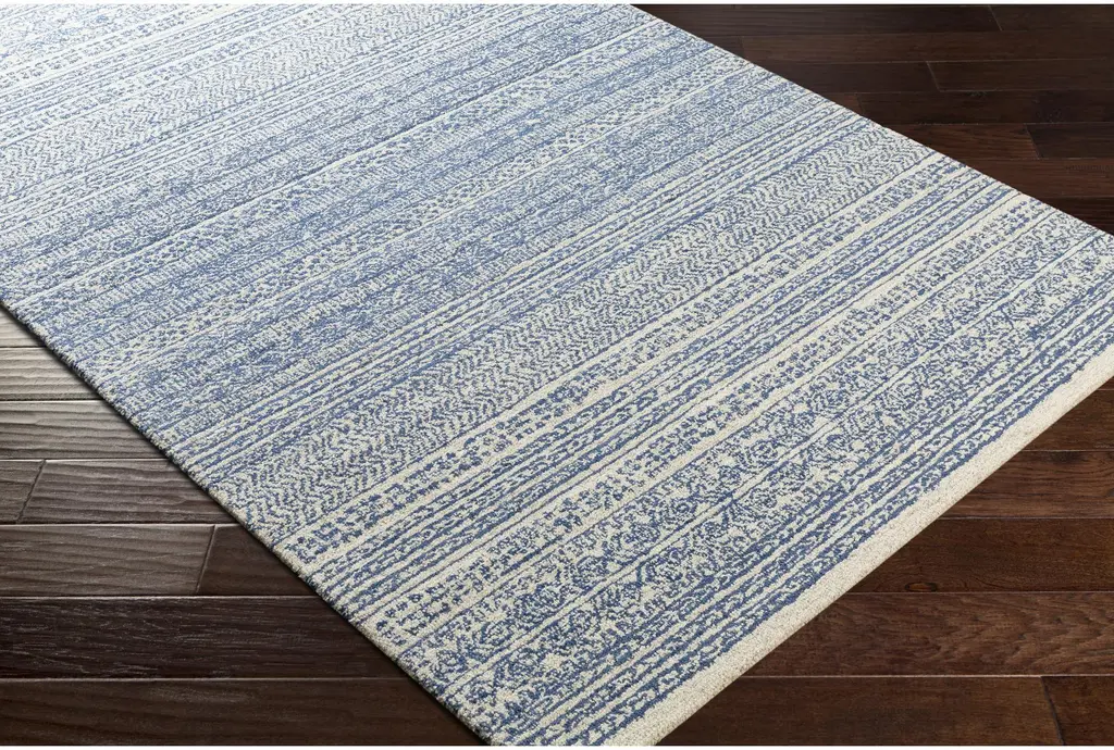 Enhance your living space with the Global Inspired Rug by Surya. This 9'x12' rectangle rug features a captivating denim and cream chevron pattern, perfect for adding a contemporary touch to your indoor decor. Made with 100% wool, this low pile fiber rug provides both comfort and durability.