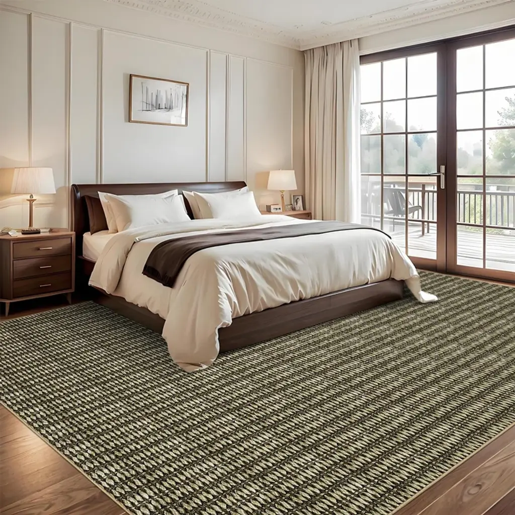 **9'x12' Vintage Stripe Area Rug - Machine Washable Non-Slip Carpet for High Traffic Areas** **Premium Rug Description:** Enhance your home with this elegant **9'x12' vintage stripe area rug**, designed to bring warmth and sophistication to any room. Crafted from **durable polyester** with a **needle-punched construction**, this rug offers a **low-pile texture** that balances comfort and practicality. The **rich brown stripe pattern** adds a timeless charm, making it a versatile choice for modern, rustic, or transitional decor. With a **non-slip rubber backing**, **stain-resistant surface**, and **machine-washable convenience**, this rug is perfect for busy households with kids, pets, or high foot traffic. --- ### **Key Features & Benefits:** 1. **Timeless Vintage Stripe Design** - **Classic brown stripe pattern** adds depth and texture to any space - **Neutral color scheme** blends seamlessly with various decor styles - Perfect for **living rooms, bedrooms, dining areas, and entryways** - Enhances **farmhouse, industrial, or Scandinavian interiors** 2. **Effortless Machine Washable Care** - **Fully machine washable**¡ªtoss it in cold water for easy cleaning - **Quick-drying low-pile fabric** reduces downtime - **Stain-resistant fibers** repel spills and dirt for hassle-free maintenance - **Vacuum-friendly** for daily upkeep 3. **Secure Non-Slip Backing** - **Rubberized TPR backing** prevents slips on hardwood, tile, or laminate - **29.5 lb weight** ensures stability without shifting - **Safe for kids, pets, and elderly family members** - **Protects floors** from scratches and scuffs 4. **Durable & Family-Friendly** - **Reinforced edges** resist fraying and wear - **Stain-resistant technology** repels liquids for easy wipe-ups - **Hypoallergenic & non-shedding**¡ªideal for allergy sufferers - **Pet-friendly**¡ªwithstands claws and playful pets 5. **Low Pile & Foldable Convenience** - **0.3" low pile** allows for smooth door clearance - **Foldable design** for easy storage and transport - **Lightweight yet sturdy**¡ªeasy to move but stays in place - **Ideal for high-traffic areas**¡ªkitchens, hallways, and entryways