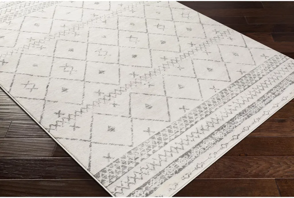 9'x12'3" Rectangle Geometric Fiber Rug-White Grey Global | Indoor | Low Pile By Surya