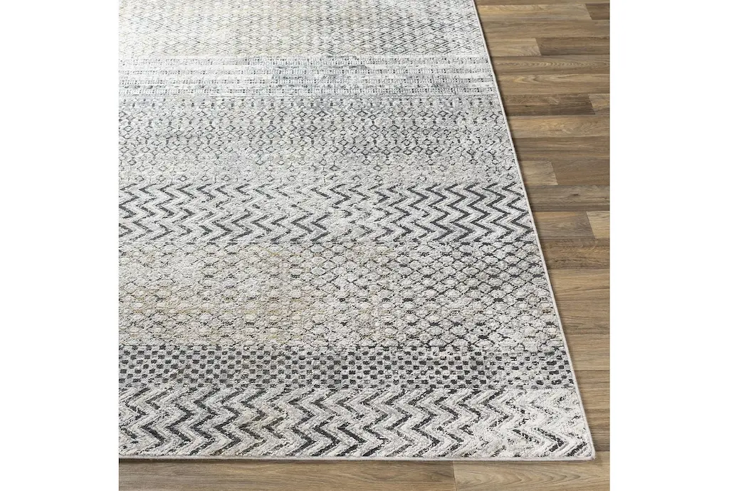 9'x12'3" Rug | Modern | Medium Pile | Grey | Rectangle | Chevron | Indoor | Low Pile | Fiber By Surya