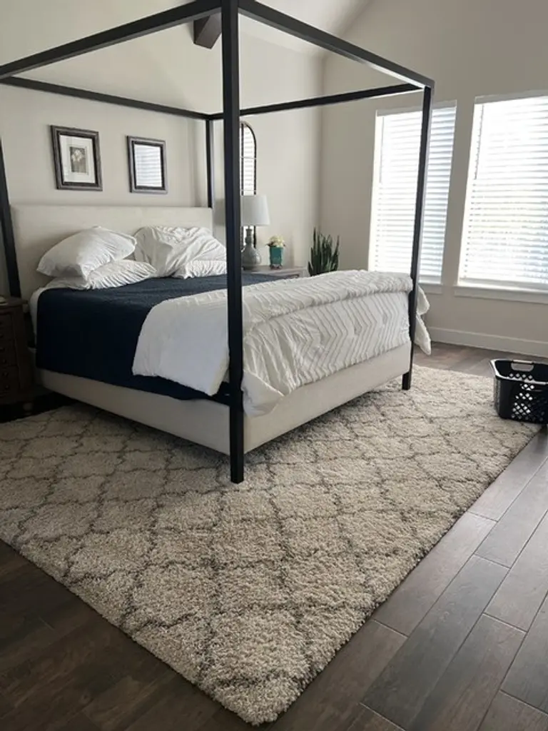 Introducing the 9'x13' Fiber Rug-Tron Ivory/Grey by Surya. This large, contemporary rug is designed for indoor use and features a low pile for easy maintenance and comfort. Made from 100% wool, it offers a soft and natural feel underfoot, perfect for your living room or any indoor space.