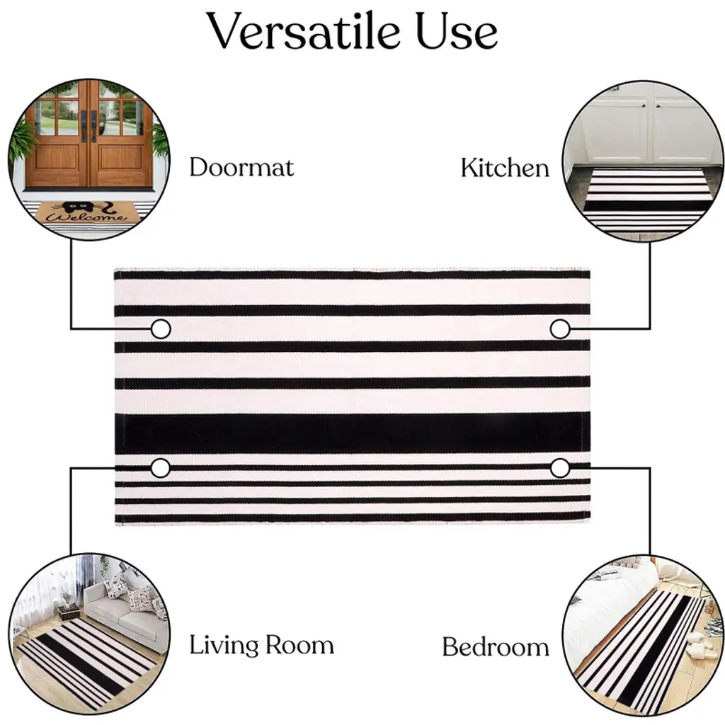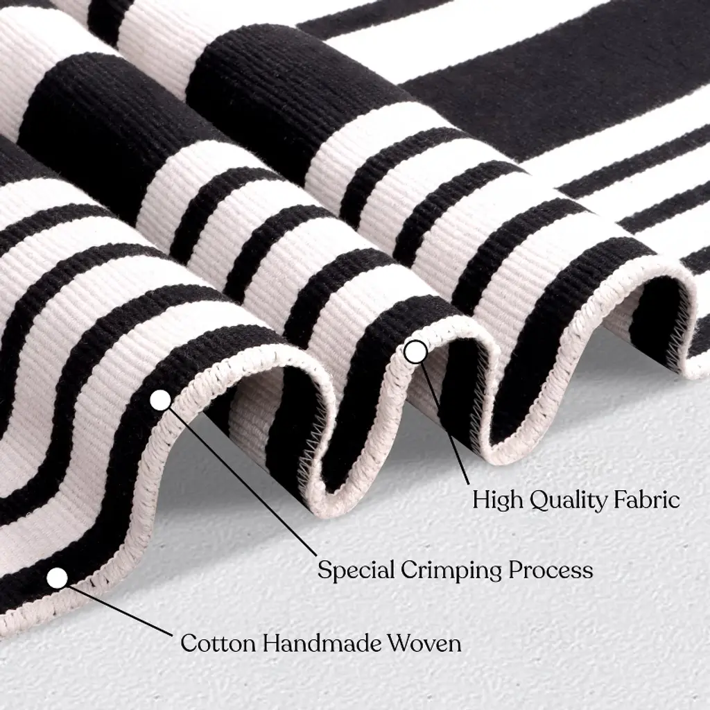 A1 Home Collections Black and White striped rug adds a bold, contemporary touch to any room. Handwoven for durability, it resists stains and fading, maintaining its vibrant color over time. Its flat-woven construction ensures easy maintenance, and it’s perfect for both indoor and outdoor use. Simple to care for, this rug can be vacuumed regularly to keep it looking fresh. Add luxury and style to your space with this trendy accent piece!