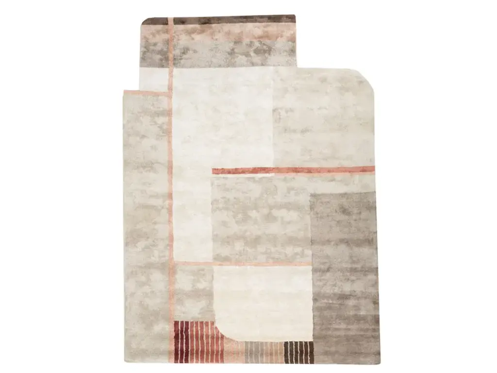 AAKAR ESK-369(3D) is a hand-knotted rug, an extraordinary blend of contemporary design and traditional craftsmanship.In the understated tones of Medium Grey and Light Peach, this 180x270 cm hand-knotted rug captures the essence of modern artistry. Crafted from wool and bamboo silk, its bold design of abstract mazes and jigsaw patterns exudes dynamic energy and refined elegance. Striking a perfect balance between chic sophistication and inviting warmth, it effortlessly complements any decor style, classic, traditional, or contemporary. The intricate craftsmanship and harmonious palette transform this rug into more than a functional piece, it’s a centerpiece of artistic versatility, ready to elevate any space with its timeless appeal. Composition: 60% bamboo silk yarn, 30% wool yarn, 10% cotton yarn.