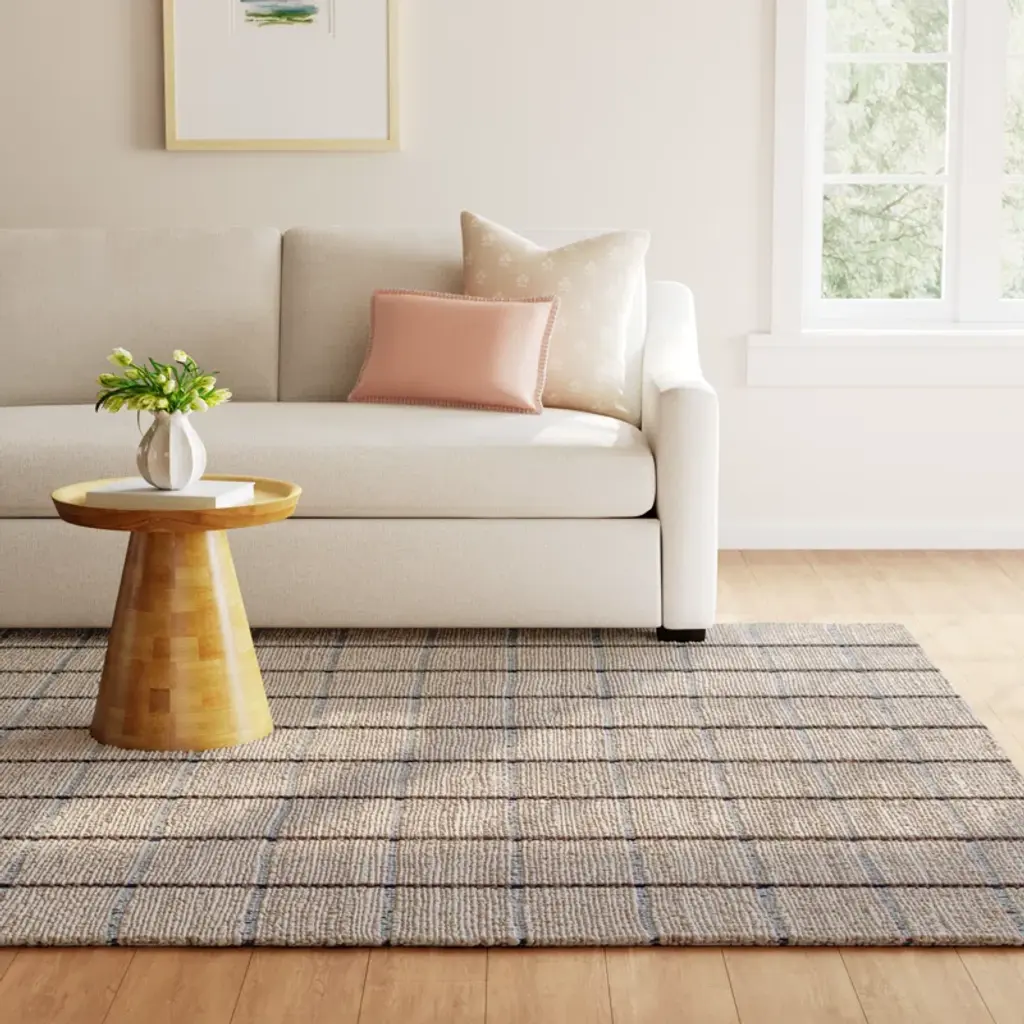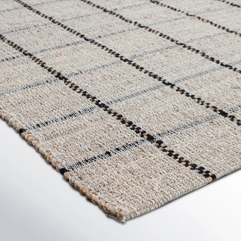 Elevate your space with this hand-loomed indoor area rug. It has black and white cotton fibers woven into the jute that create a windowpane pattern, making it a warm, inviting foundation in any room. Plus it is safe for use over heated floors and has a low pile height so it's a good choice for high-traffic areas, like living rooms and entryways. We recommend rolling it out over a rug pad to keep it in place.