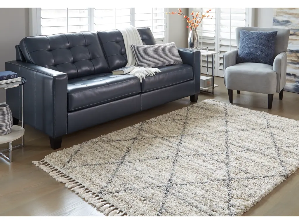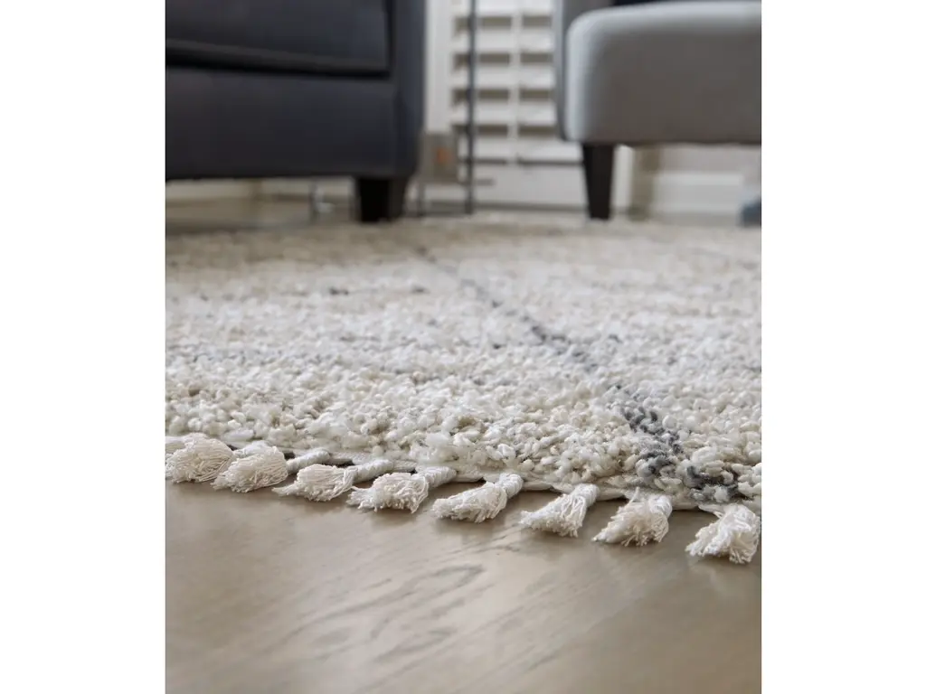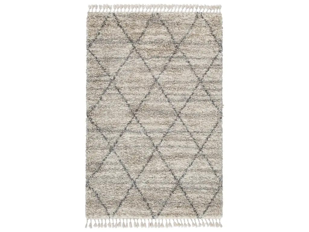Shake up your style with woven shag. The Abdalah area rug offers a deliciously comfortable underfoot experience. With a diamond design and braided tassel edge, this floor covering carries a variegated gate pattern in beige, white and shades of gray to elevate your room.