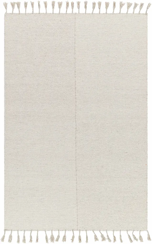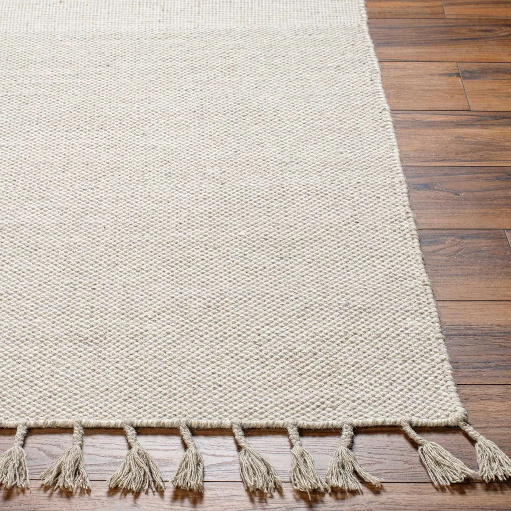 Collection: Abhay Colors: Beige, Medium Gray, Medium Brown, Gray Construction: Hand Woven Material: 100% Wool Pile: No Pile Styles: Transitional,Bohemian Made In: India Thickness: 0.2" Fringe Length: 3.5" Price Range: $$$$$ (Affordable)