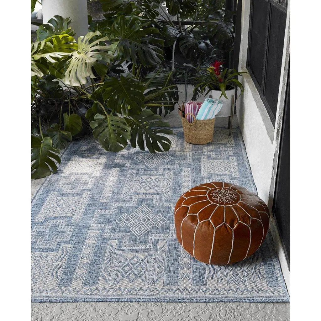 Abram Global Bazaar Blue Tribal Patterned Indoor Outdoor Rug - 8'x10'