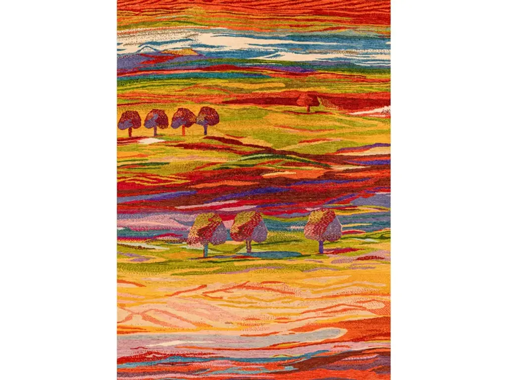 ABSTRACT MODERNIST LANDSCAPE 2 is a rectangular wool rug.Zollanvari Super Fine Gabbeh.“Colour is a power which directly influences the soul” stated Wassily Kandinsky. Colour interaction is at the very heart of this new collection. Zollanvari have taken southern Persian tribal motifs, such as trees and squares, and created a painterly collection rich in colour. And yet, there is a third dimension to these creations… they are inspired in style by modernist stained-glass windows. This Zollanvari Studio design takes elements from Zollanvari's Gabbehs Flora & Fauna Collections to deliver an ethereal, soulful quality to any interior.