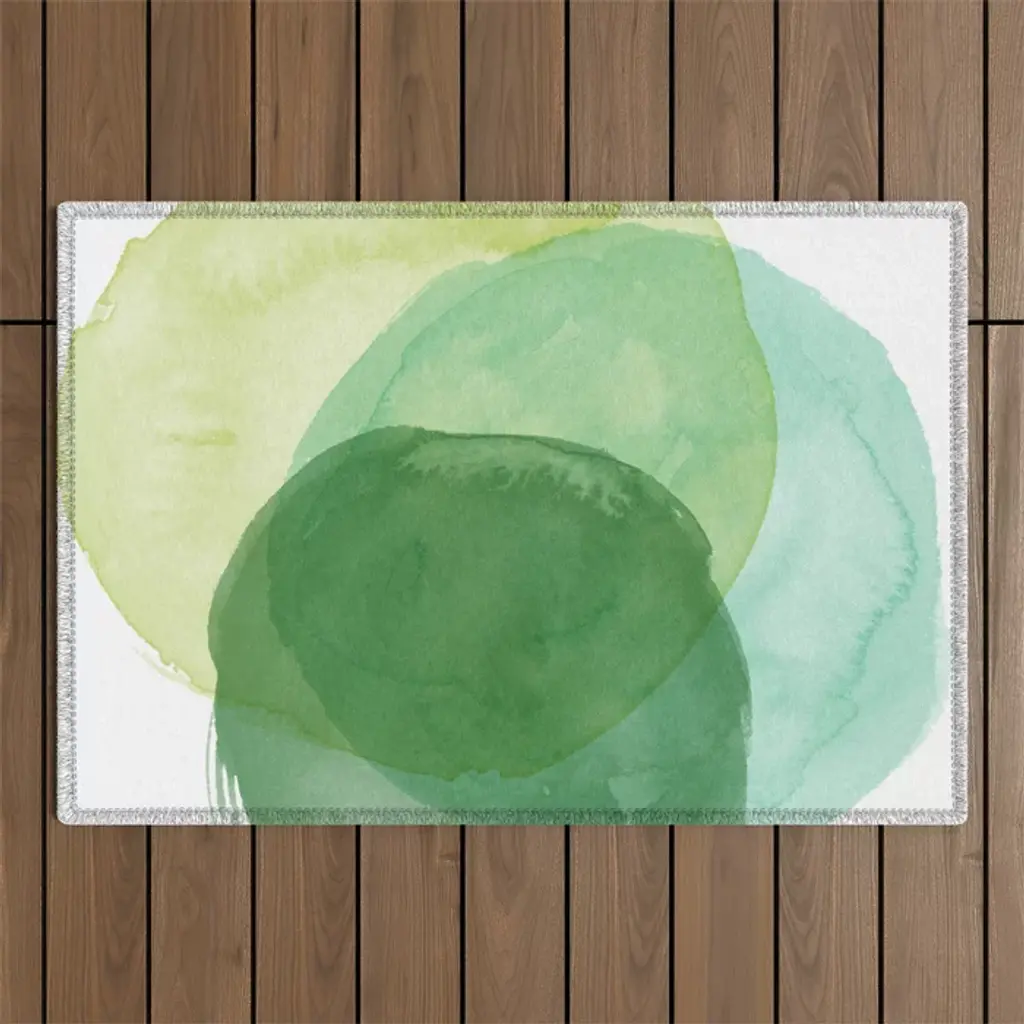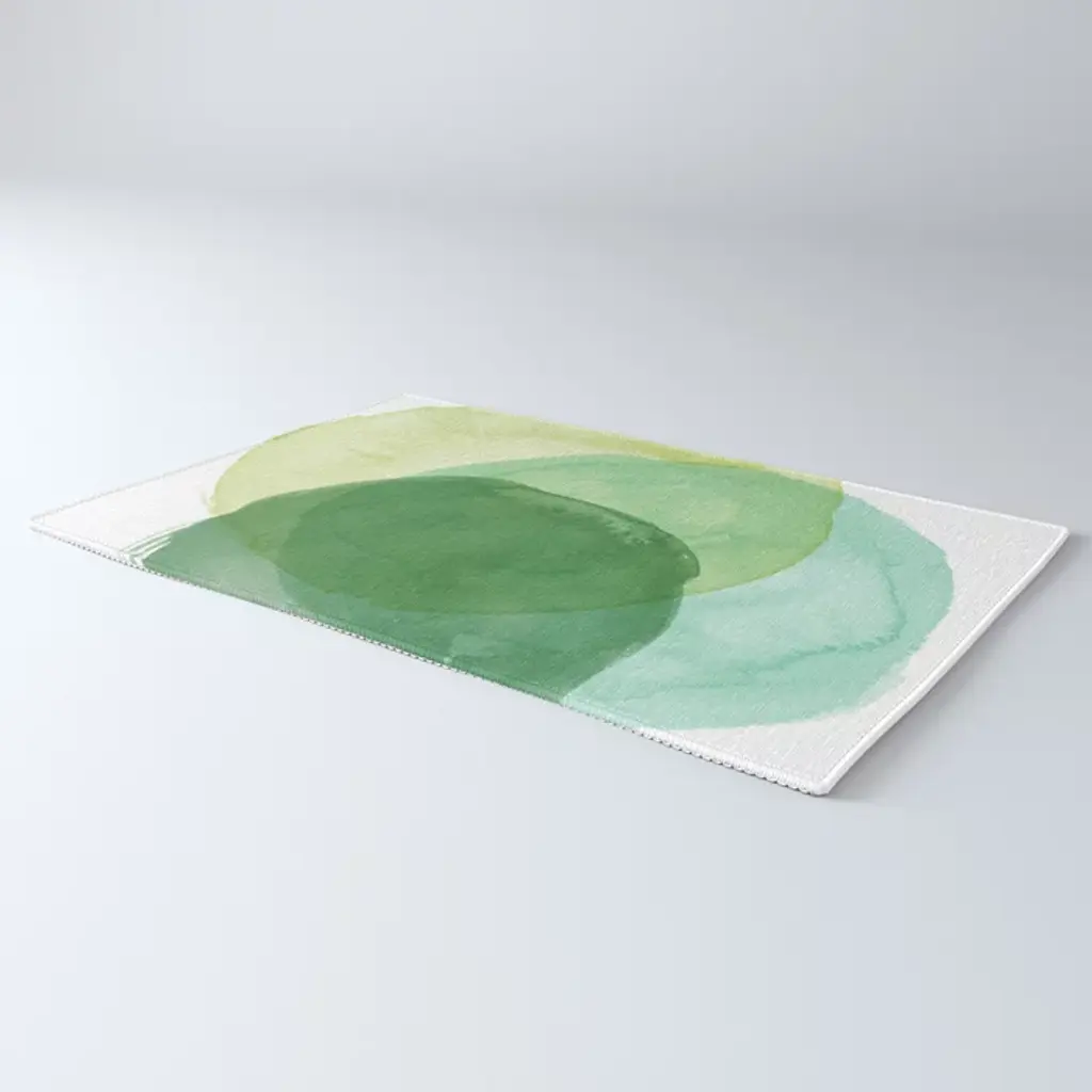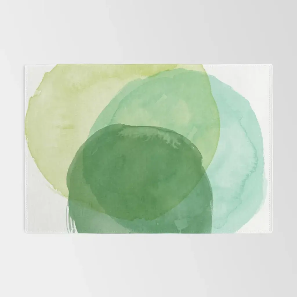 Abstract Organic Watercolor Shapes Painting In Green Rug