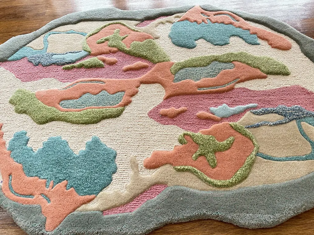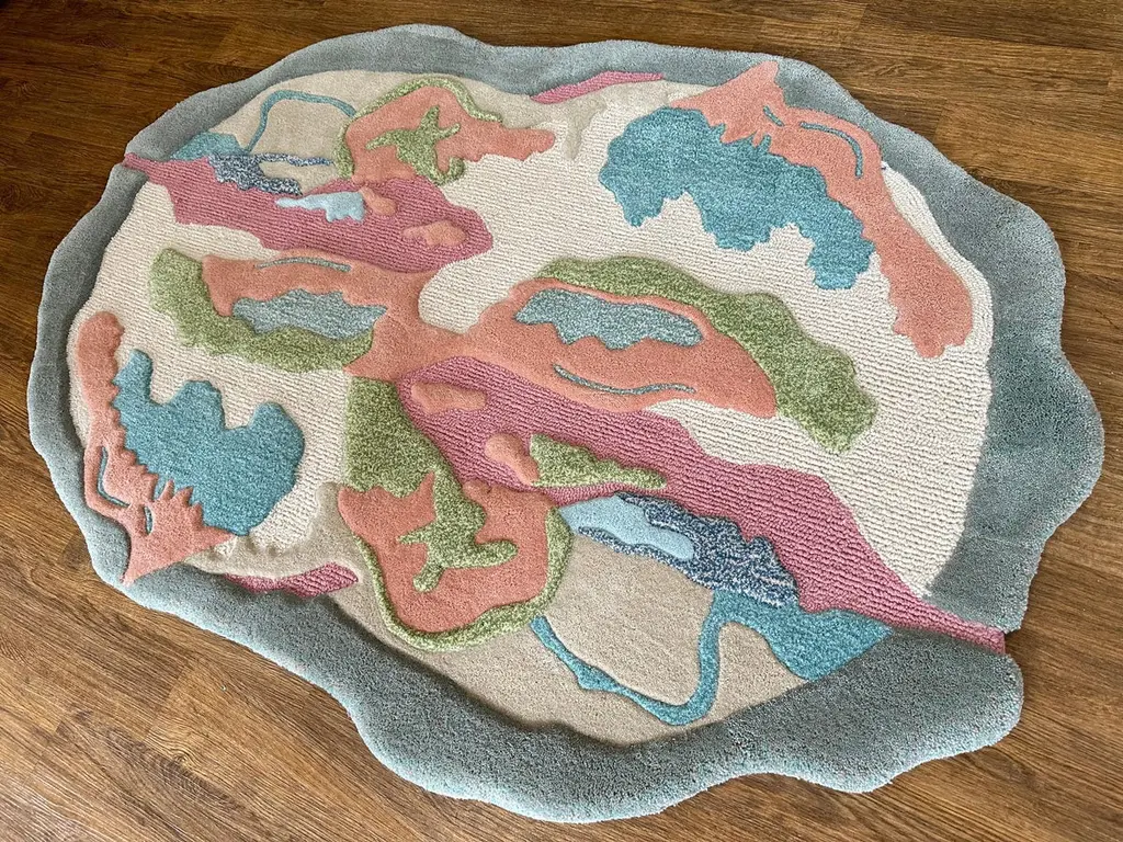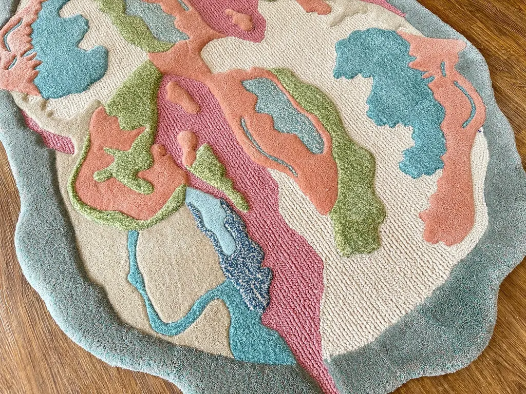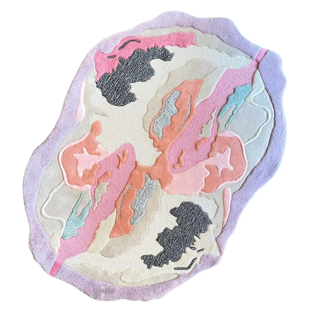 Just in a gooey-shaped, slimy pastel goodness cheekily tucked into an abstract, squiggly oval rug-a fresh addition to RAG Home's playful rug lineup.Custom in size and color.