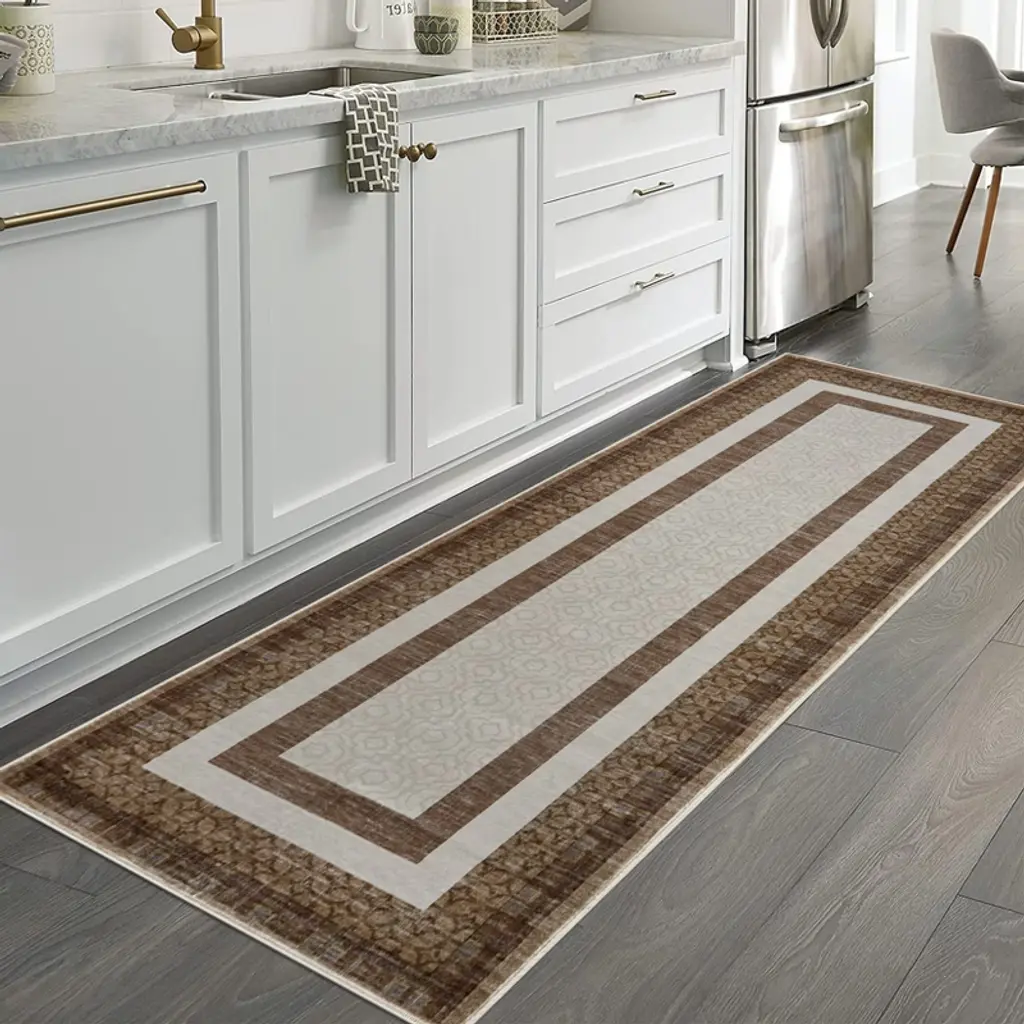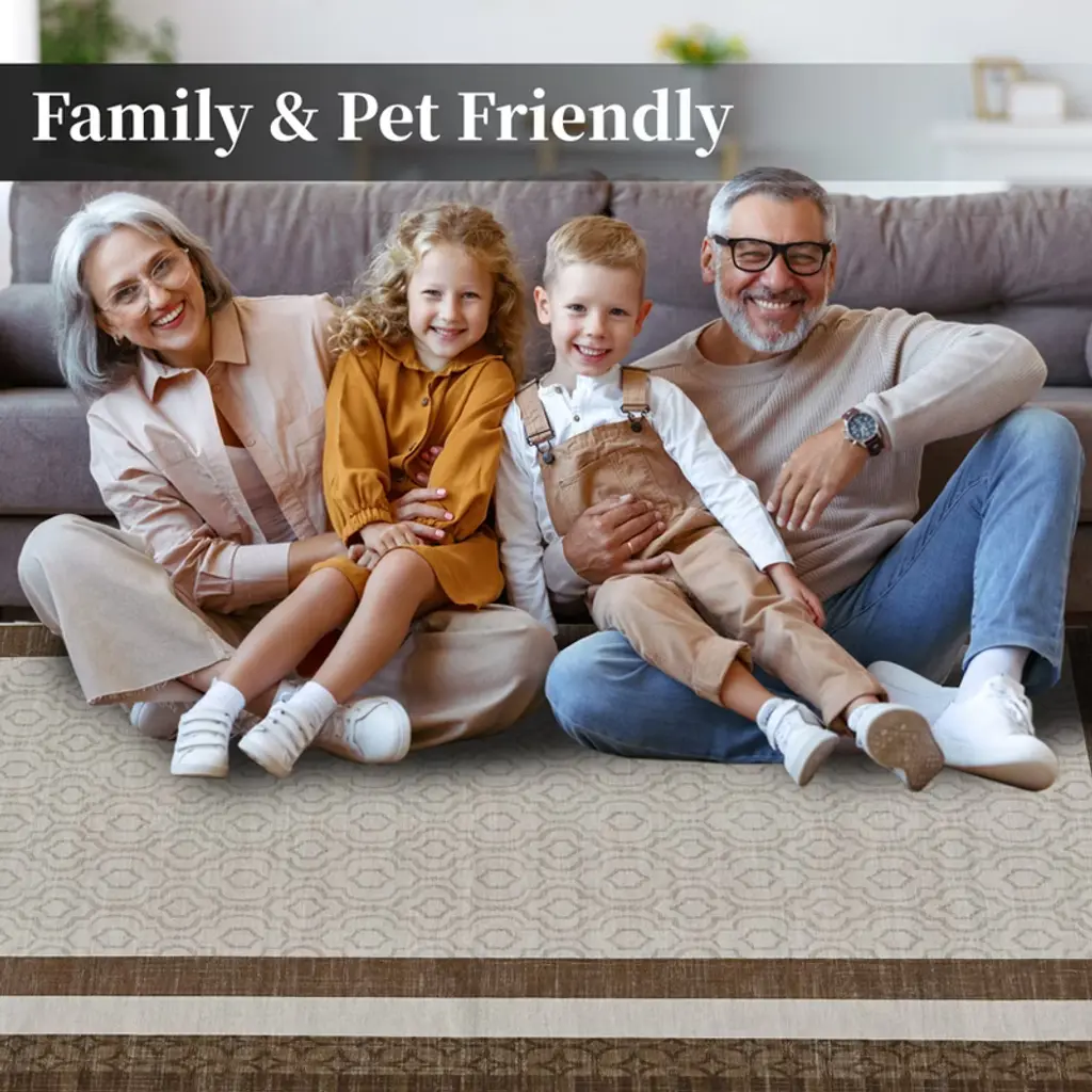 Abstract Washable Area Rug for Living Room, Soft Low-Pile Bedroom Rug, Minimalist Border Stain Resistant Large Room Carpet for Dining Room