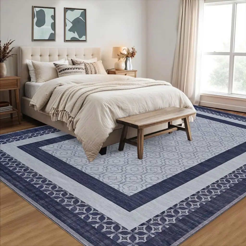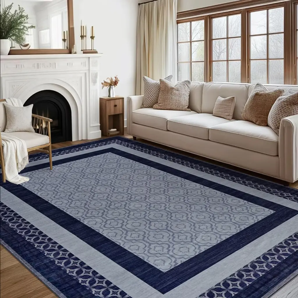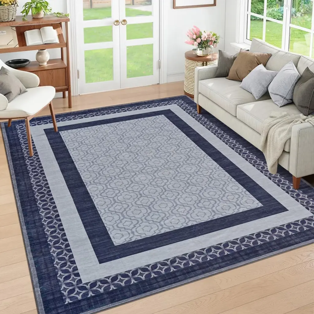 Abstract Washable Area Rug for Living Room, Soft Low-Pile Bedroom Rug, Minimalist Border Stain Resistant Large Room Carpet for Dining Room