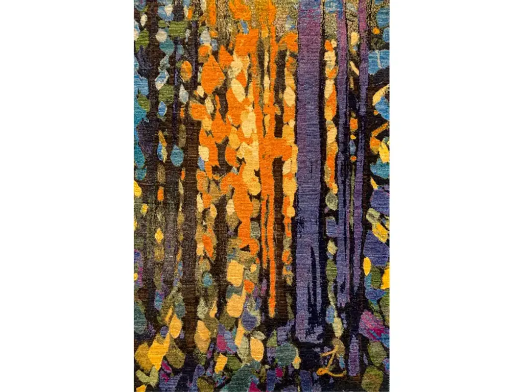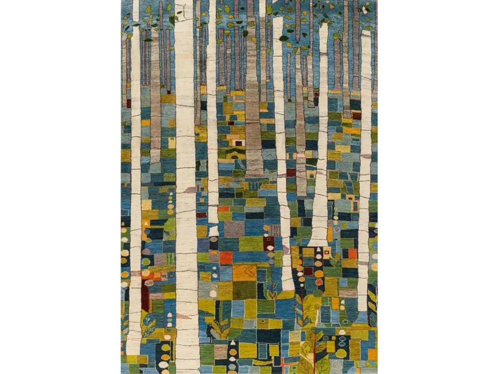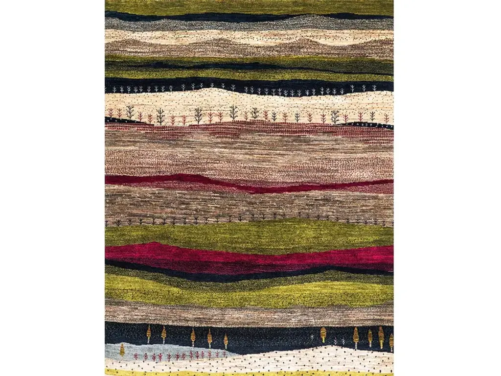 Abstract Woodland 1 is a rectangular wool rug.Zollanvari Super Fine Gabbeh. Abstract designs are Gabbeh classics. Zollanvari have produced modern versions of these classics that have won recognition worldwide, including various Carpet Design Awards at DOMOTEX, German Design Awards and Interiors Innovation Awards at IMM Cologne. Abstract & Plain Gabbehs are available in both Zollanvari Fine and Zollanvari Super Fine qualities. We also offer carpets in natural colours (un-dyed wool) and single colours with a mesmerising abrash effect in our Zollanvari Fine ‘Shekarlou’ range, woven by Turkmen tribes in northern Iran. These carpets are lighter due to the use of a single weft between rows of knots.