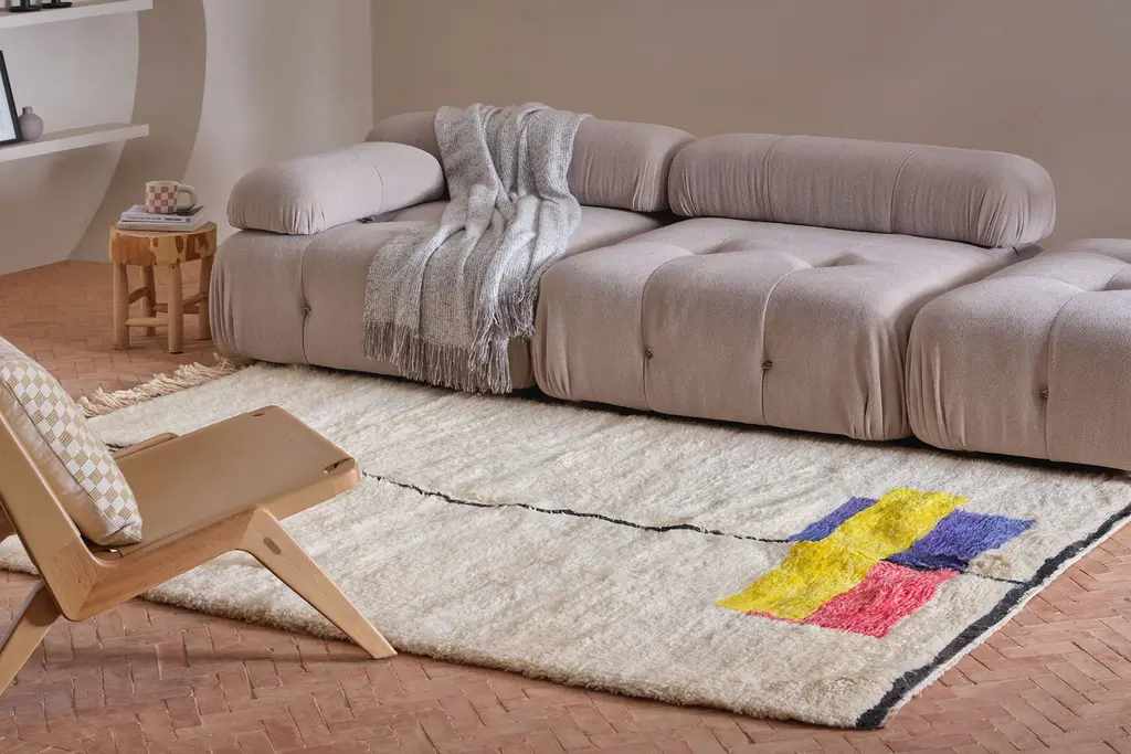 Our Moroccan pieces are each one-of-a-kind. Much of our collection was woven between 30 and 100 years ago, and curated by us. Other rugs in our collection are fresh off the loom and made with traditional techniques. Moroccan rugs don’t come with a key. As with any painting or poem, their motifs have many subjective interpretations. Originally made for personal use, these rugs took months to weave, documenting a shifting tide of events and emotions in the weaver’s life.