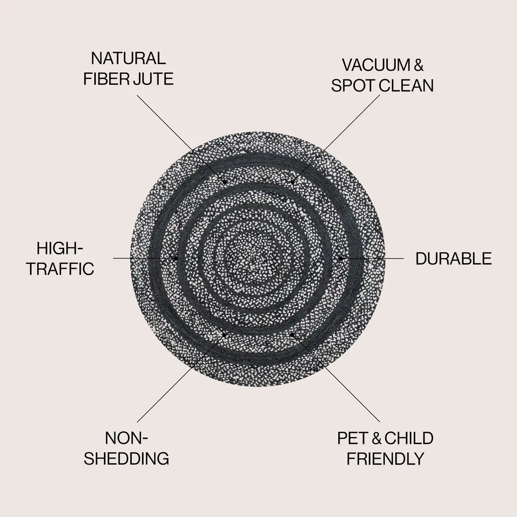 Our round jute rug is the perfect way to add a taste of bohemian decor to a living room, home office, or bedroom. Our multi-colored braided rug is made from natural fibers that bring a casual element to any space. Durable and easy to care for, our round jute rug adds cottage flare to any home.