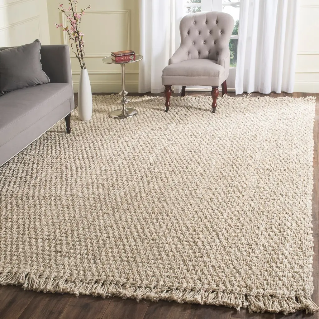 Introducing our exquisite hand-knotted area rug, a masterpiece of craftsmanship and style. Sized at a versatile 6' X 9', this medium rectangle rug is a statement piece for any room. With its height of 1 3/8", it offers a plush feel underfoot. Crafted in the serene shades of birch, this rug brings a natural and calming presence to your space. The jute pile construction not only ensures durability but also adds a unique texture that is soft to the touch and visually appealing. Proudly made in India, this rug is a testament to the traditional techniques passed down through generations of skilled artisans. The hand-knotted design ensures each piece is one-of-a-kind, with attention to detail that is unmatched. Whether placed in your living room, bedroom, or office, this area rug will elevate your decor with its understated elegance and impeccable construction. Bring home this beautiful representation of timeless design and enduring quality today.