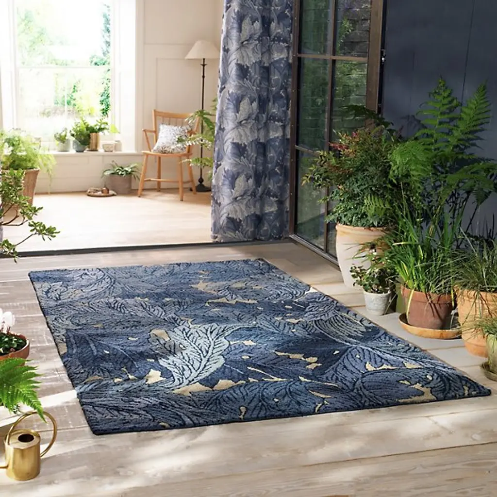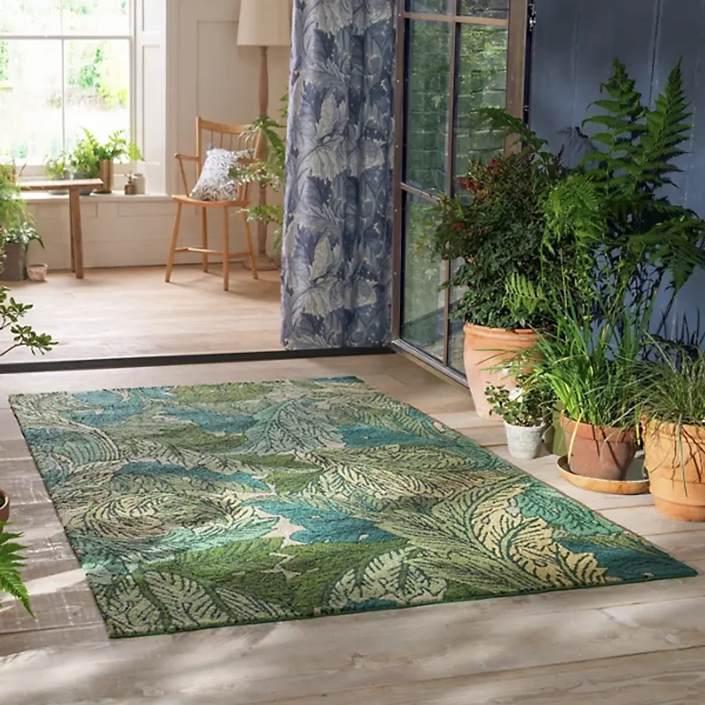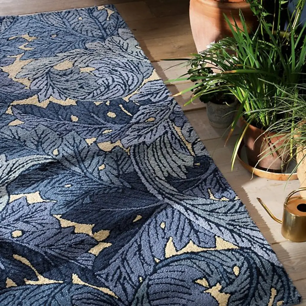 The Acanthus Indoor/Outdoor Area Rug from Morris & Co combines vintage inspiration with modern production methods. Sustainably made from recycled PET yarn hand-tufted by Indian artisans, it shows off a stylized William Morris pattern originally made in 1875, showing off vibrant, curling leaves contrasting with the background. The surface is soft, and the pattern is refined enough for interiors while remaining tough enough to go outdoors.