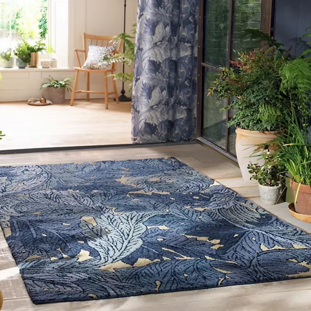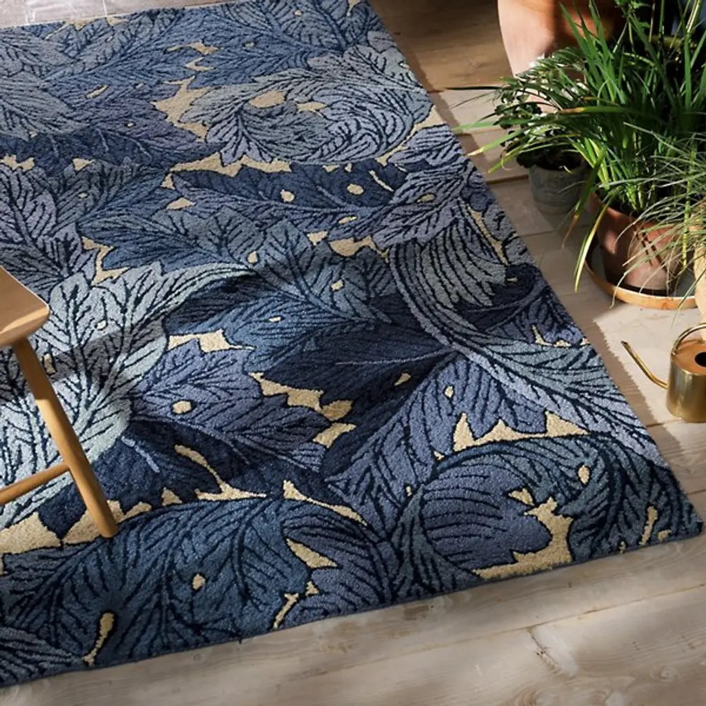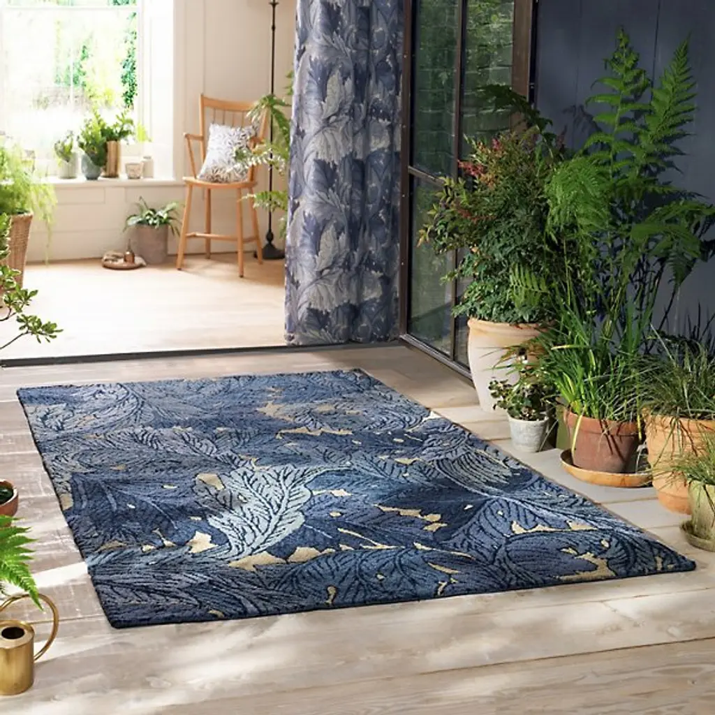 The Acanthus Indoor/Outdoor Area Rug from Morris & Co combines vintage inspiration with modern production methods. Sustainably made from recycled PET yarn hand-tufted by Indian artisans, it shows off a stylized William Morris pattern originally made in 1875, showing off vibrant, curling leaves contrasting with the background. The surface is soft, and the pattern is refined enough for interiors while remaining tough enough to go outdoors.