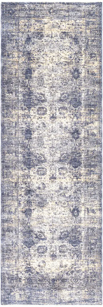 Collection: Accokeek Colors: Navy, Denim, White, Pale Blue, Beige Construction: Machine Woven Material: 100% Polyester Pile: Medium Pile Pile Height: 0.24" Styles: Traditional Made In: Turkey Thickness: 0.31" Fringe Length: 0.6" Price Range: $$$$$ (Affordable)
