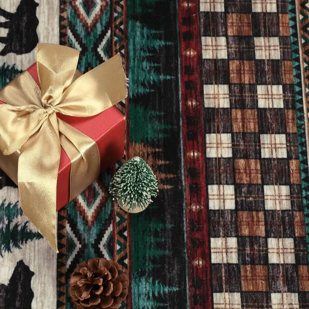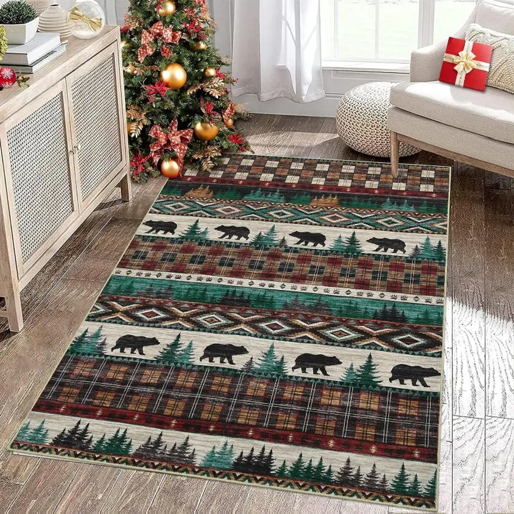 Acekool Holiday Washable Rug: Cozy Style, Stress-Free Maintenance This 4x6, 5x7 rug blends festive charm with practical features for bustling homes. Its machine-washable build and non-slip base simplify holiday cleanup, while the soft surface adds warmth to living rooms, bedrooms, or entryways. Key Features: Rubber grip backing stays secure on slick floors, even with heavy foot traffic. Quick-drying fibers retain vibrant patterns after washing. Stain-resistant surface repels spills like wine, glitter, or cookie crumbs. Lightweight and foldable for compact storage post-season. Dimensions & Versatility: This rug anchors seating areas, frames holiday trees, or brightens narrow hallways. Pair with neutral décor for subtle festivity or layer with bold accents for playful contrast. The muted green/camel palette complements wood, metal, and seasonal reds effortlessly.