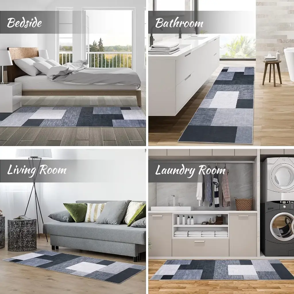 The Acekool geometric rug combines artistic design with practical features for busy households. Its washable, non-slip construction simplifies home maintenance while elevating your decor. For indoor use on hard flooring surfaces. Colors may vary slightly under different lighting. Cold water wash recommended on gentle cycle. Allow to fully air dry before replacing furniture. Initial creases will relax naturally within 24-48 hours.