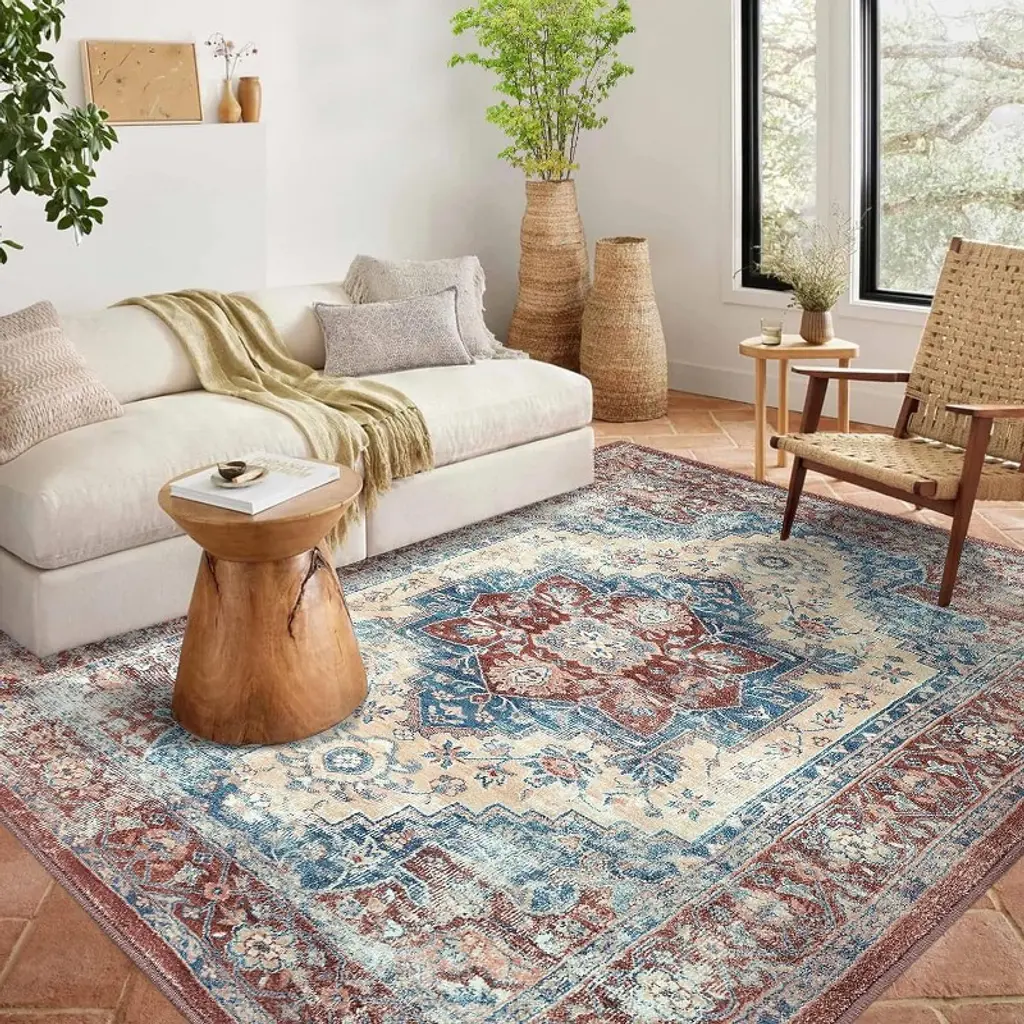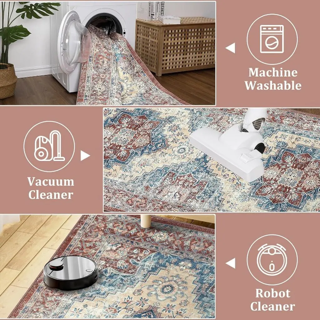 The Acekool -inspired rug combines classic design with practical features for today's homes. Its washable construction and soft texture offer both beauty and functionality. Measures 6 feet 7 inches by 9 feet 6 inches with 0.5-inch pile height. For indoor use on hard flooring surfaces. Cold water machine wash recommended (gentle cycle). Air dry completely. Colors may show slight variations between production batches. Initial creases relax naturally within 48-72 hours. Spot clean with mild detergent as needed. Regular vacuuming maintains appearance.