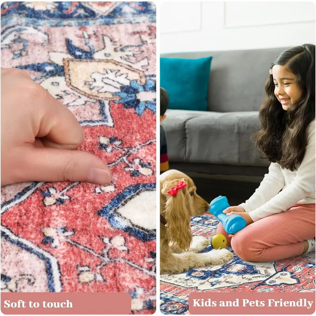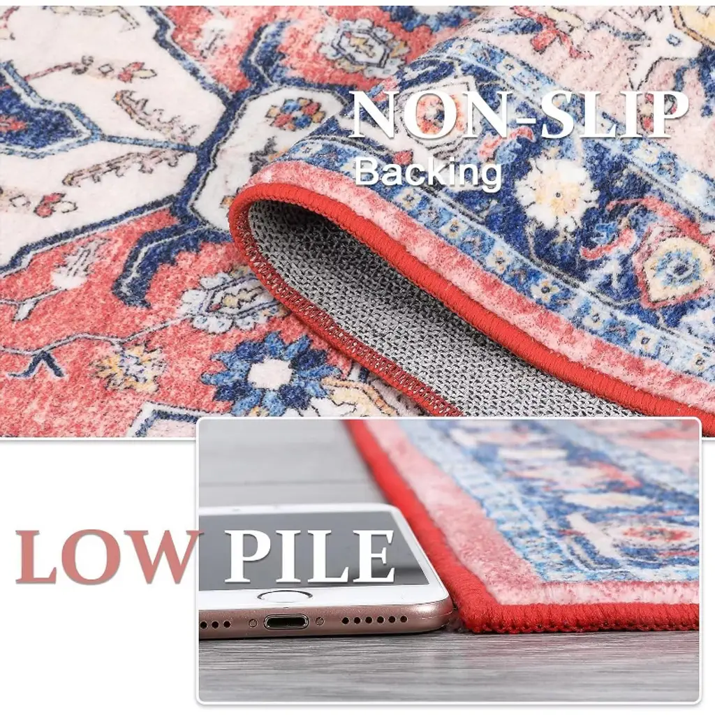 Refresh your home with the Acekool Washable Print Area Rug. Inspired by classic motifs, this rug features a pink sun-inspired design that brightens living rooms, bedrooms, and play spaces. Its detailed pattern and cheerful coloring add a pop of personality and charm, while the low pile and flat construction provide a comfortable and practical base for family life.This rug is designed for easy care and long-lasting style. The plush 580gsm low pile is soft underfoot, while the 1400gsm total weight gives it body and helps it stay in place. A foldable design makes moving and storage simple, so you can easily redecorate or pack away between uses. Stain-resistant fibers help protect against everyday mess and pet accidents, while the non slip backing supports stability on wood, tile, or laminate floors. Machine washable and quick to dry, this rug meets the needs of busy households seeking both comfort and convenience.Acekool offers several sizes, including 2x6ft (61x183cm), 3x5ft (91x152cm), 8x10ft (244x305cm), and 9x12ft (274x366cm). Select the size that fits your space, from entryways to oversized living rooms. For best care, vacuum regularly, spot clean spills promptly, and machine wash cold as needed. Enjoy color, style, and comfort with the Acekool Sun Area Rug.