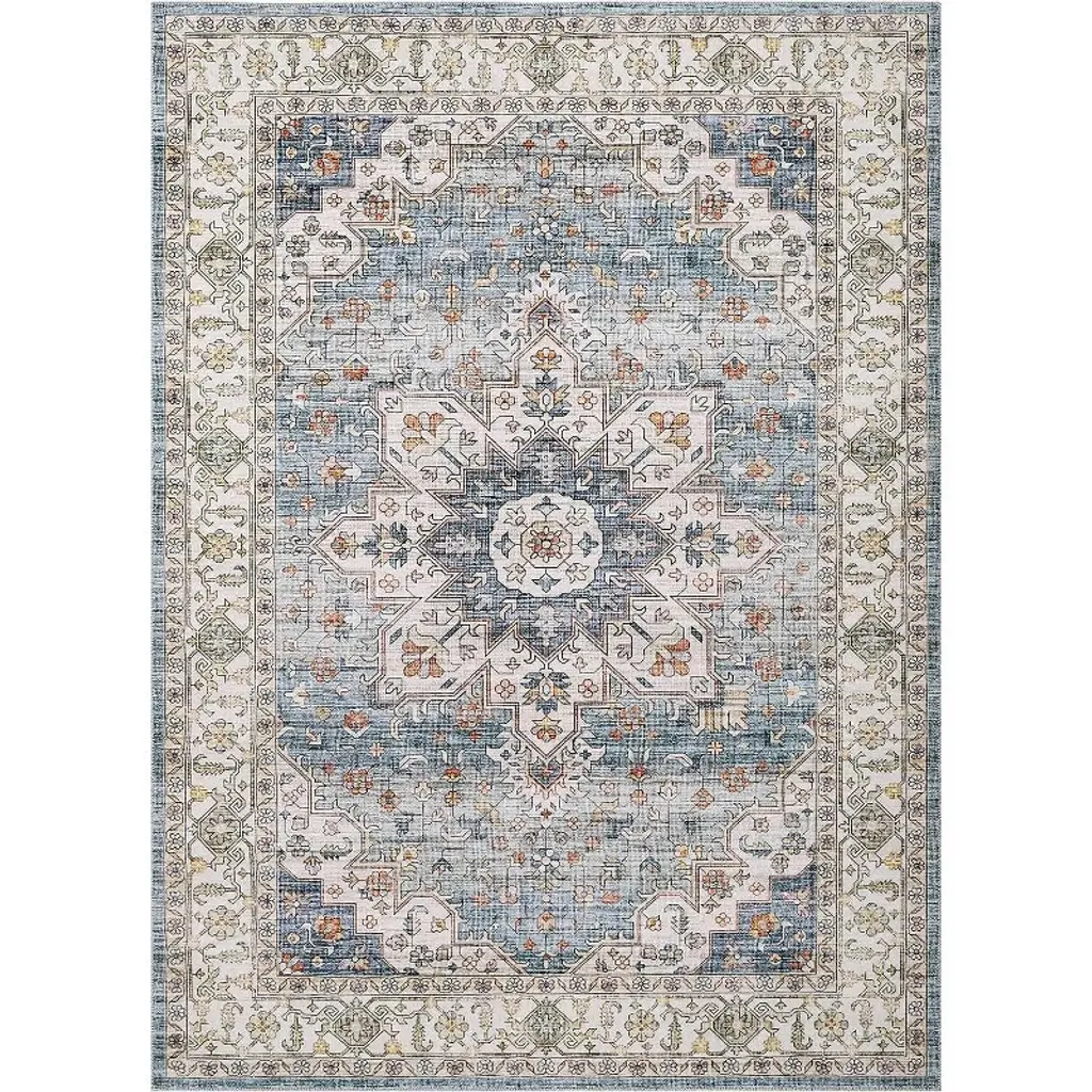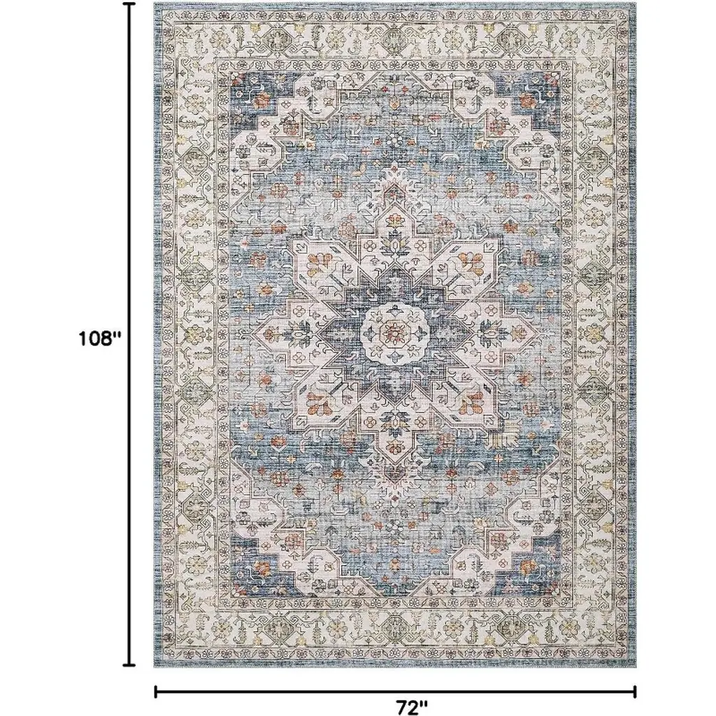 The Acekool Vintage Floral Rug blends classic charm with everyday functionality. Its washable design and secure backing make it practical for busy households. The muted blue-green colorway creates a calming atmosphere in bedrooms, living rooms or offices. The timeless floral pattern adds subtle visual interest. Measures 72" x 108" with a 0.4" pile height. Safe for all indoor floor types. Coordinates with both traditional and modern decor styles